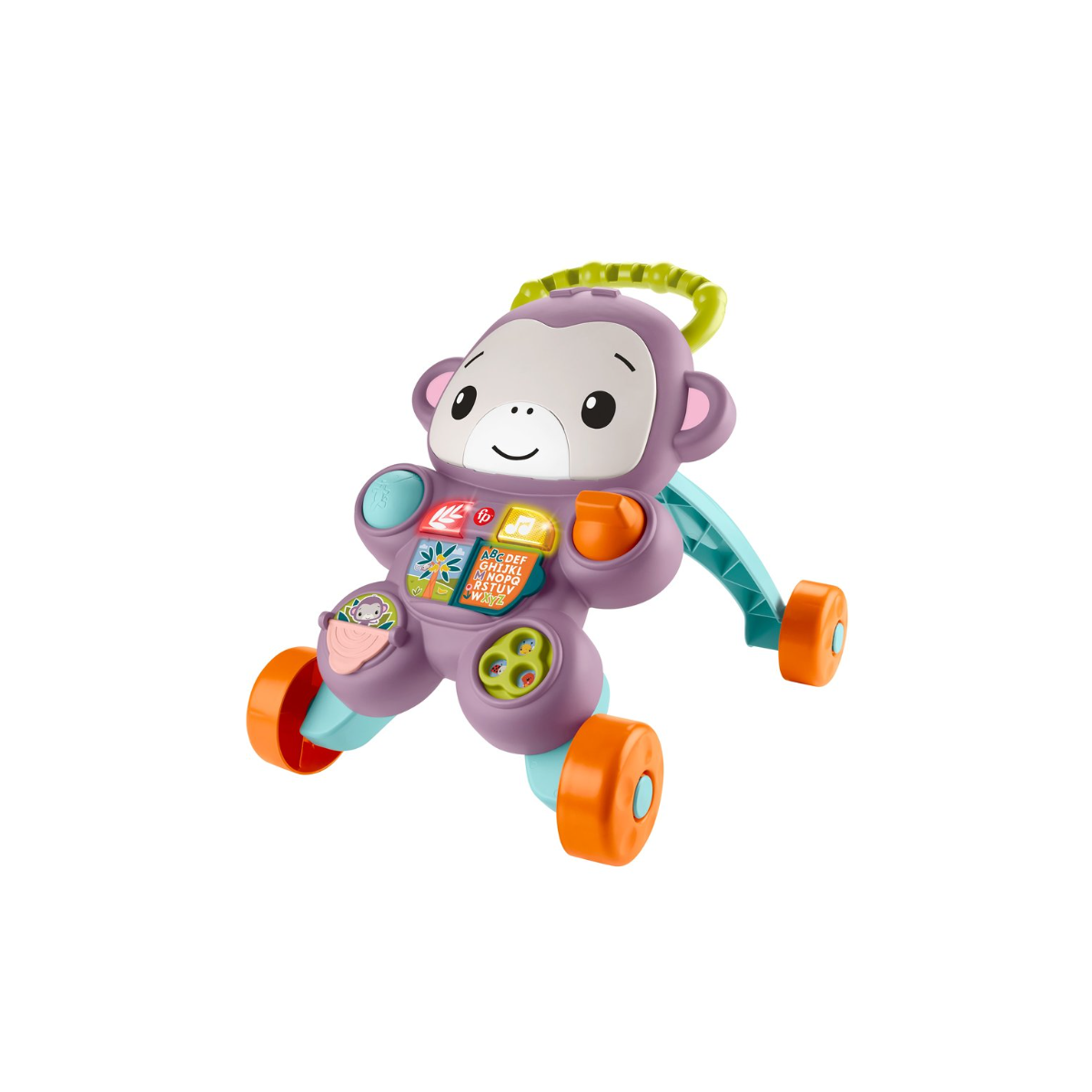 Este correpasillos no solo ayuda en la motricidad gruesa, también incluye botones interactivos con luces, música y sonidos que fomentan el aprendizaje temprano de letras, números y canciones. Al presionar sus botones luminosos, el monito responde con frases divertidas y melodías que hacen del juego una experiencia más entretenida. Además, tiene diferentes actividades en su panel frontal que despiertan la curiosidad y estimulan la coordinación mano-ojo.