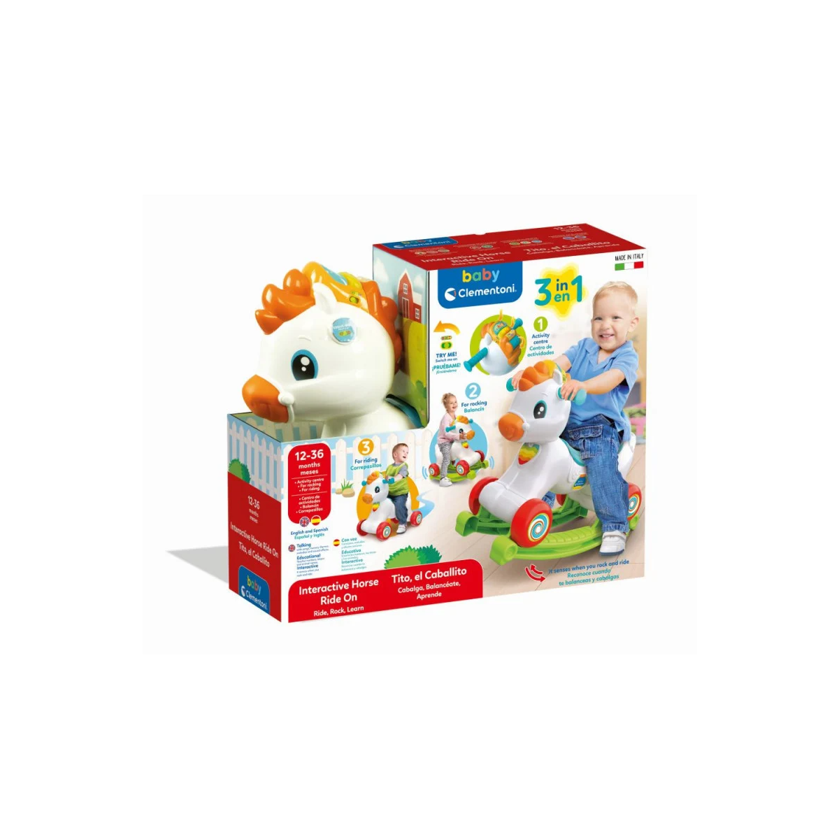 Tito el Caballito es un juguete interactivo y educativo diseñado por Clementoni para estimular el desarrollo sensorial y motor de los más pequeños. Este encantador caballito no solo proporciona entretenimiento, sino que también contribuye al aprendizaje temprano a través de sus múltiples funciones interactivas y atractivas.