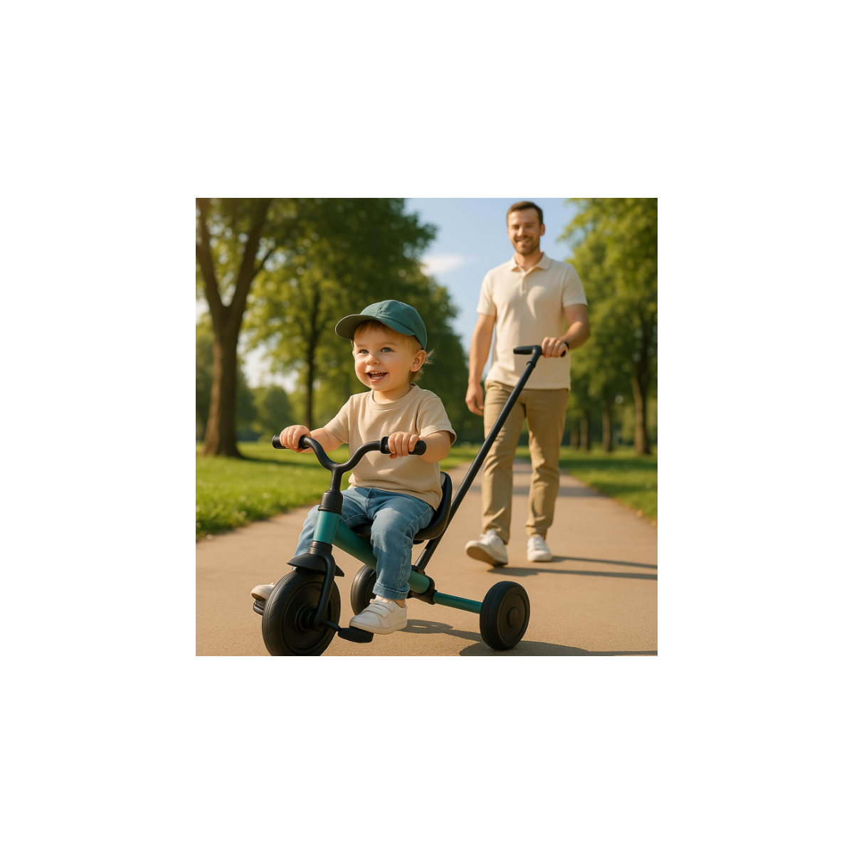 Descubre el Triciclo Evolutivo Qplay 6 En 1 Elite Verde; una opción versátil que crece con tu hij@, combinando seguridad, comodidad y estilo en cada etapa.