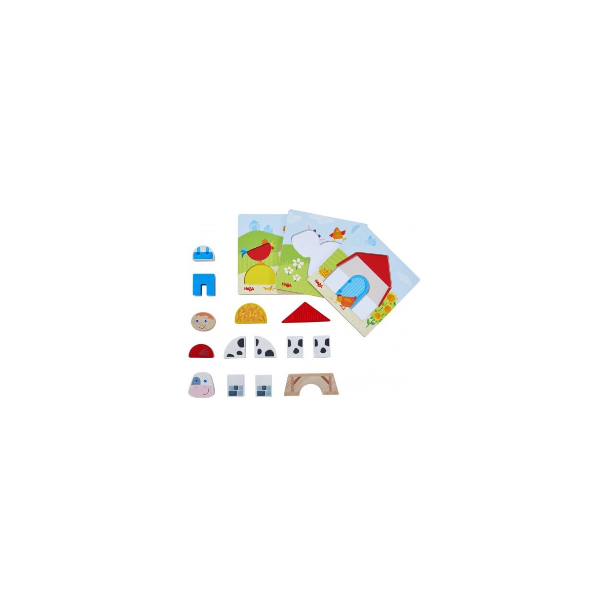 Juego de clasificación La Granja de HABA para niños y niñas desde 18 meses. Con tableros y fichas para reconocer animales, colores y formas mientras desarrollan la motricidad fina jugando.