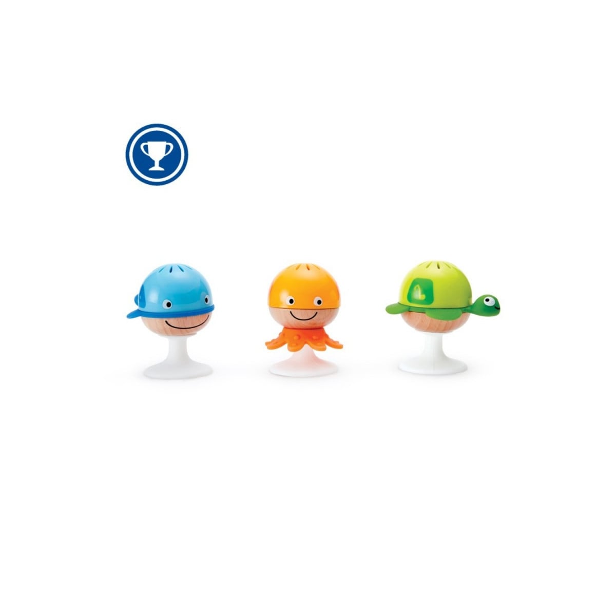 A los peques les encantan los animales, así que estos sonajeros les fascinarán. Cada uno de ellos tiene una forma y un color distintos, por lo que la curiosidad y la estimulación de los bebés se multiplicará exponencialmente. Los sonajeros, que representan a una tortuga, un pulpo y una ballena, emiten sonidos y tienen una ventosa en la parte inferior que los ayuda a mantenerse en el sitio.