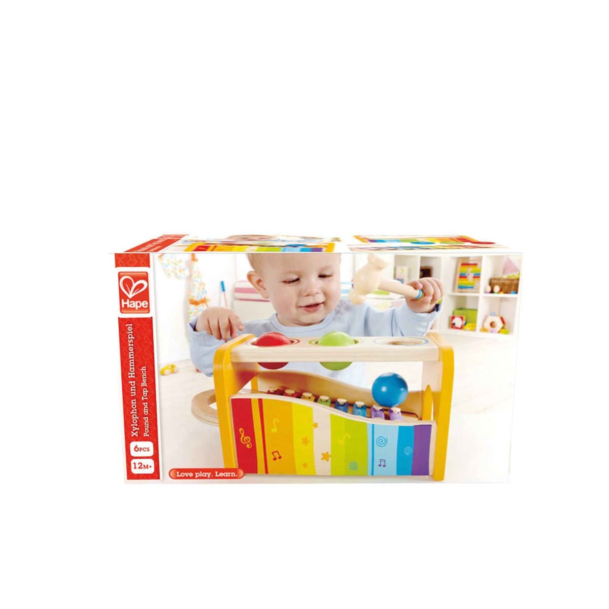 - Incluye 6 piezas: banco, percusor, xilófono y 3 bolas