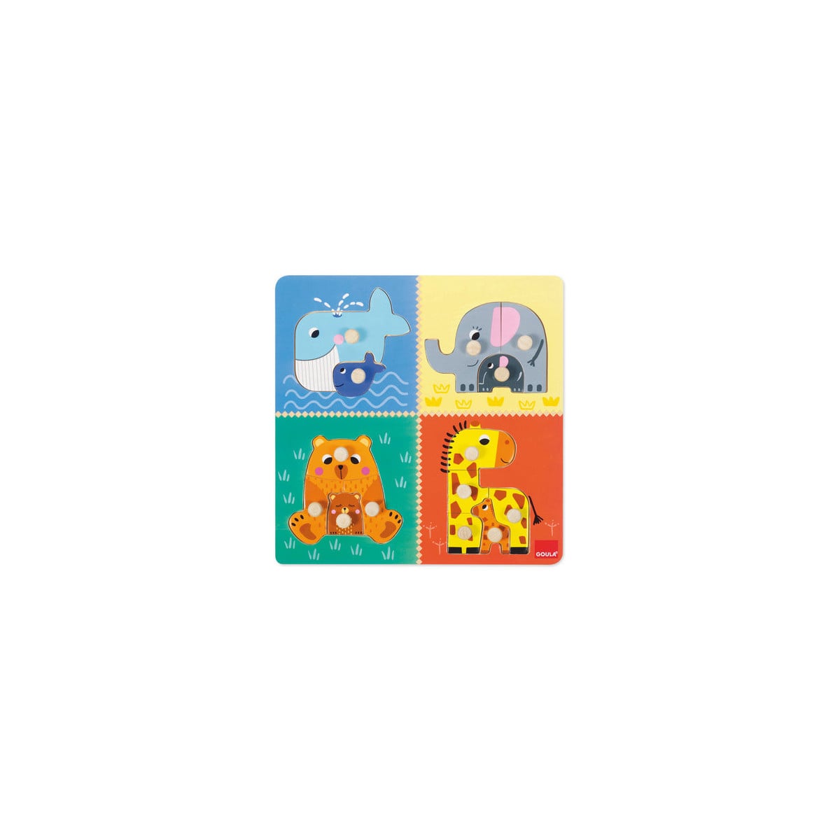 Juego puzzle de madera mamás y bebés. Tendrás que encajar a las mamás con sus retoños.