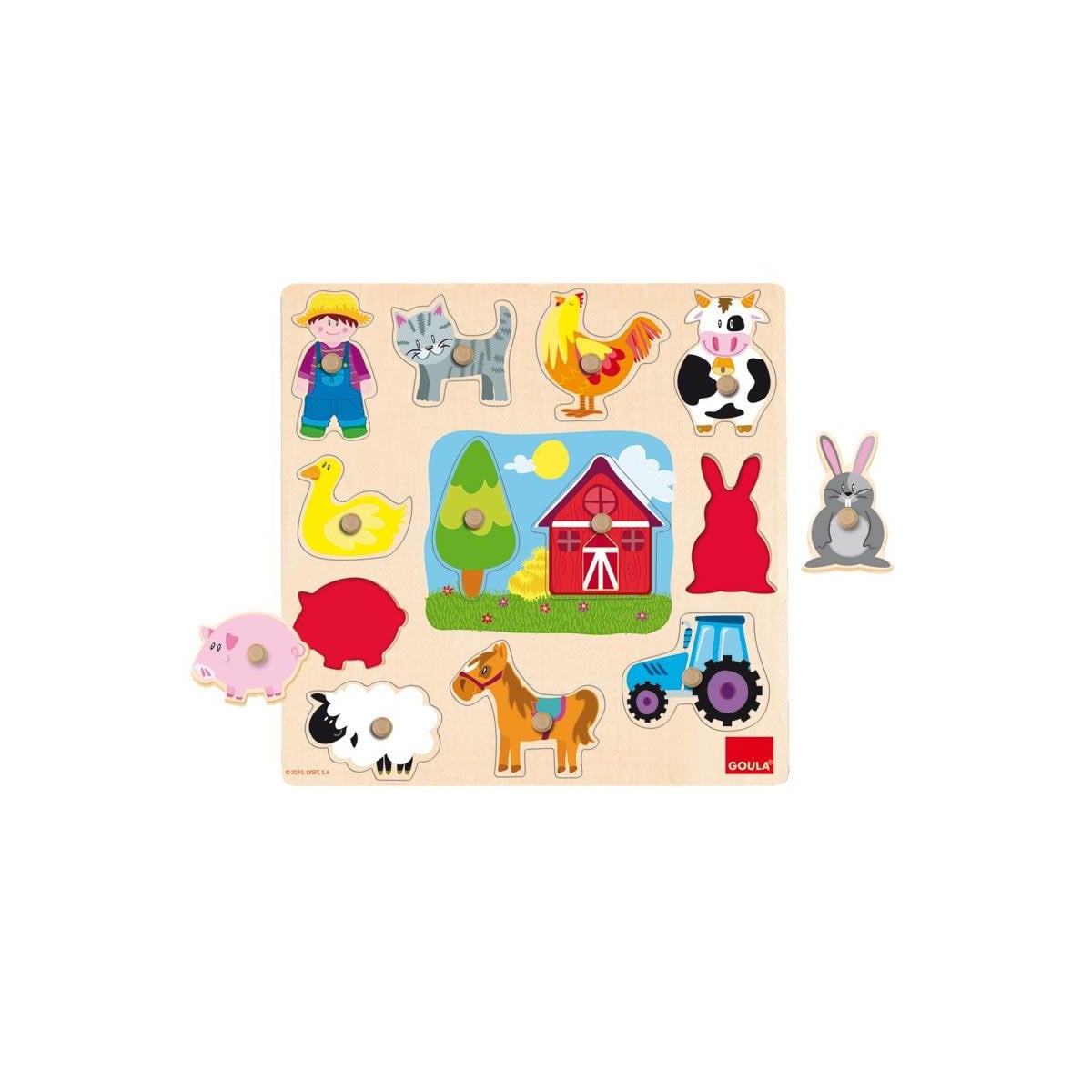 Este puzzle consta de 12 piezas grandes y resistentes con la silueta de distintos animales de granja, permitiendo a los niños y niñas asociar cada pieza con su espacio correspondiente en la base del puzzle. Gracias a su diseño con bordes suaves y colores llamativos, los pequeños podrán identificar fácilmente cada figura y aprender a reconocer los animales de una forma intuitiva.