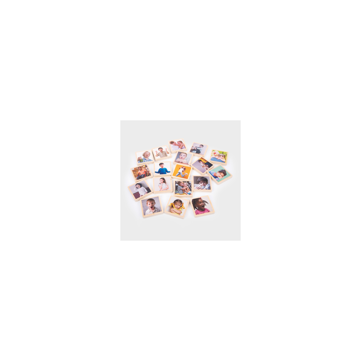 En uno de los lados, cada disco incluye una fotografía en color de alta resolución que muestra expresiones faciales claras con emociones como felicidad, emoción, enfado o miedo. A través de estas imágenes, los peques pueden empezar a poner nombre a lo que sienten y desarrollar un lenguaje emocional más rico.