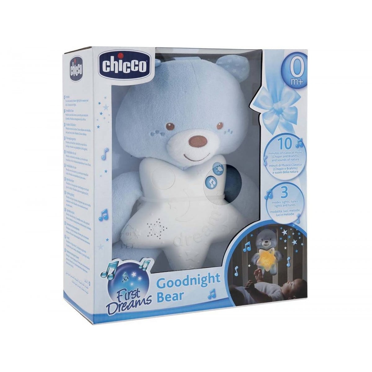 ¡Descubre al tierno compañero de sueños, el Osito Buenas Noches de Chicco! Más que un simple peluche, este adorable proyector está diseñado para acompañar a los bebés en sus momentos de descanso.