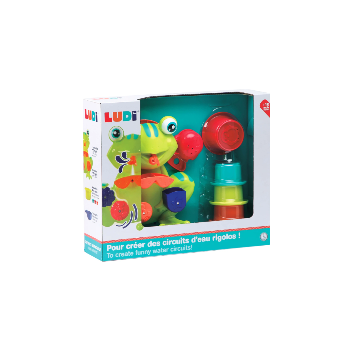 El estuche de bañoranita de Ludi es un juego pensado para transformar la rutina del baño en un momento de diversión y aprendizaje. Con un diseño inspirado en una ranita simpática, este set incluye un molino de agua y vasos apilables con agujeritos que permiten ver cómo fluye y cae el agua al verterla. Esto convierte cada baño en una experiencia interactiva que los niños disfrutan una y otra vez, despertando su curiosidad y haciéndoles reír mientras juegan con el agua.