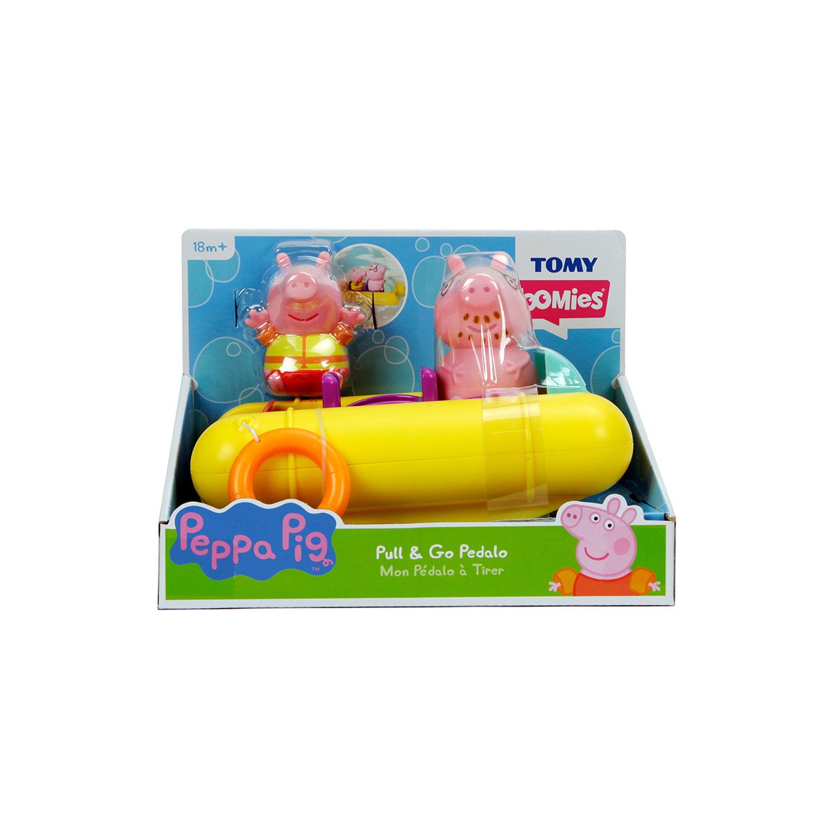 El Patín Acuático De Peppa Pig es un juguete divertido y emocionante para la hora del baño. El patín acuático presenta a Peppa Pig y su papá en asientos intercambiables. ¡Los pequeños pueden cambiarlos de lugar y crear sus propias historias mientras juegan! Además, si tiras de la cuerda, la hélice girará e impulsará el patín acuático en la bañera. El patín acuático viene con un rociador de Papá Pig y un rociador de Peppa Pig. Cuando los aprietas, lanzan chorros de agua.