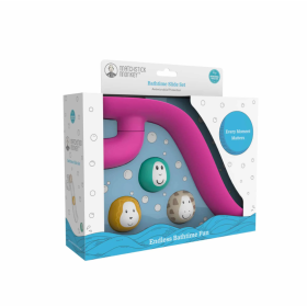 El tobogán se adhiere fácilmente a superficies lisas, como los laterales de la bañera, para que el juego sea estable y seguro. Gracias a su tamaño y curvatura, resulta cómodo de usar incluso para peques que están empezando a experimentar con el juego activo. Incluye tres pelotas con simpáticos diseños de animales, perfectas para estimular la imaginación y fomentar el juego libre.