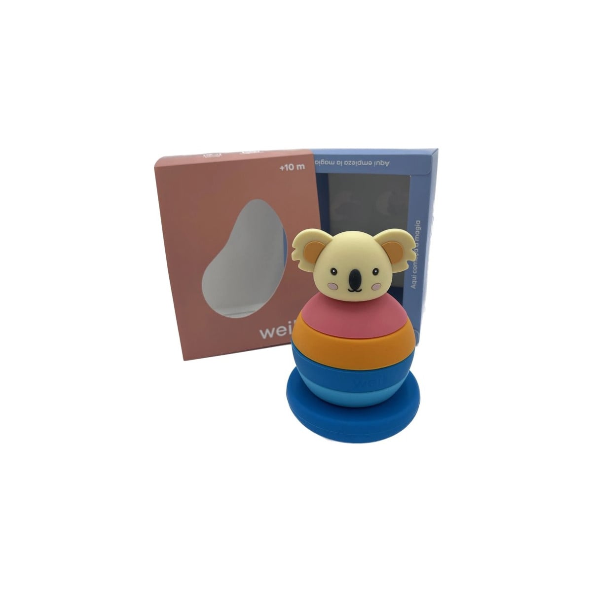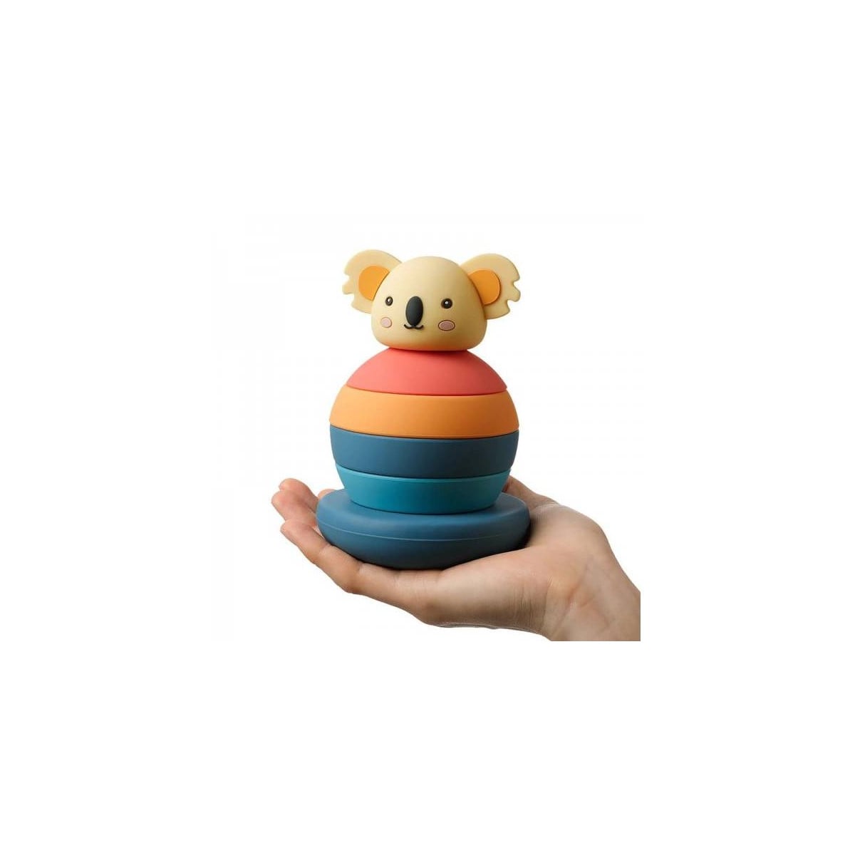 Este adorable juego sensorial apilable con forma de koala está compuesto de un material blandito y suave muy amigable para que lxs más peques de la casa se diviertan.
