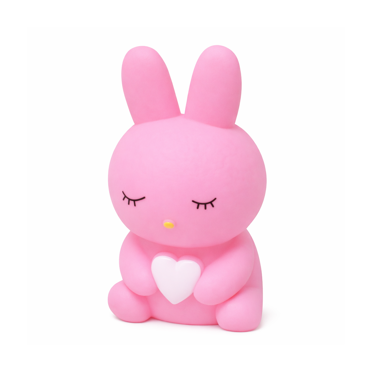 El diseño del conejito incluye detalles delicados como ojos cerrados y un corazón en sus manos, aportando un estilo tierno y decorativo que encaja perfectamente en habitaciones infantiles. Además, su tamaño compacto permite colocarla fácilmente en diferentes espacios del dormitorio sin ocupar demasiado espacio.