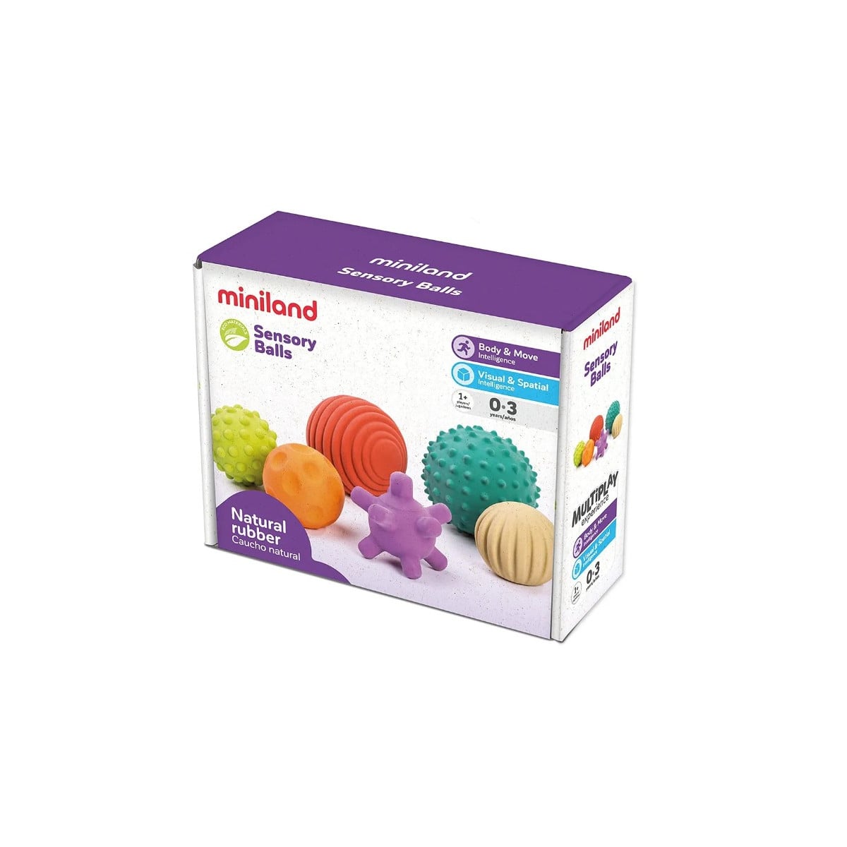 Las Pelotas Sensoriales de Miniland ofrecen una experiencia multisensorial para los niños y niñas. Sus colores vibrantes y texturas diferentes estimulan tanto el sentido del tacto como el sentido visual. Además, contribuyen al desarrollo de las habilidades motoras finas y la coordinación ojo-mano.