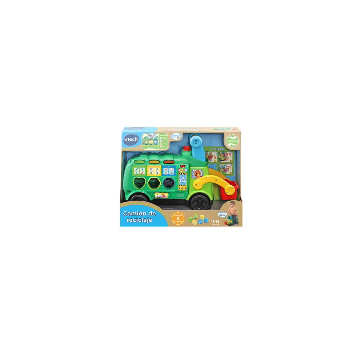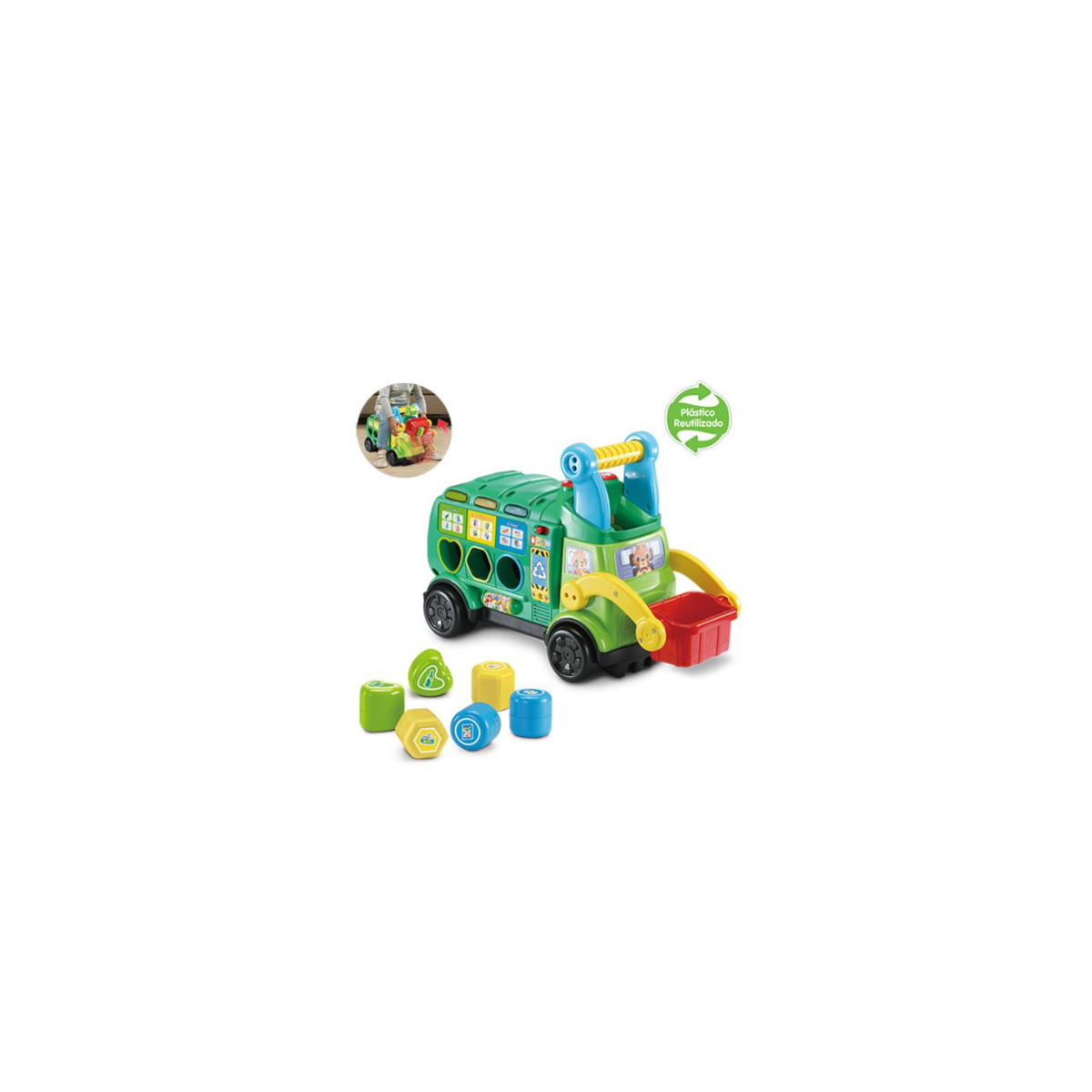 Camión de reciclaje 2 en 1 para jugar como correpasillos o como reciclaje mientras aprendes formas y colores, música y desafíos con Vtech.