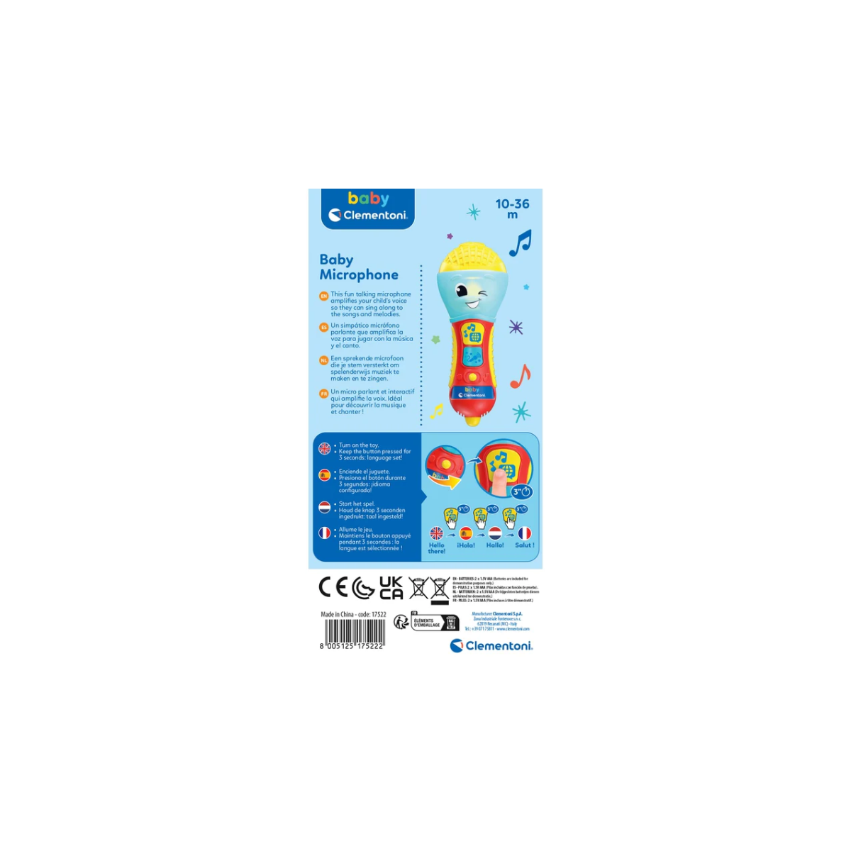 Haz que la voz de tu peque sea parte del juego con el Baby Micrófono de la marca Clementoni. Pensado desde los 10 meses, este divertido micrófono parlante convierte cada momento en una experiencia de aprendizaje y diversión. Con solo pulsar un botón se amplifica la voz del niño o niña como si hablara frente a un micrófono real, lo que ayuda a aumentar la confianza y la curiosidad por comunicarse. Incluye dos botones de colores y una luz LED que incrementa aún más la sensación de espectáculo.