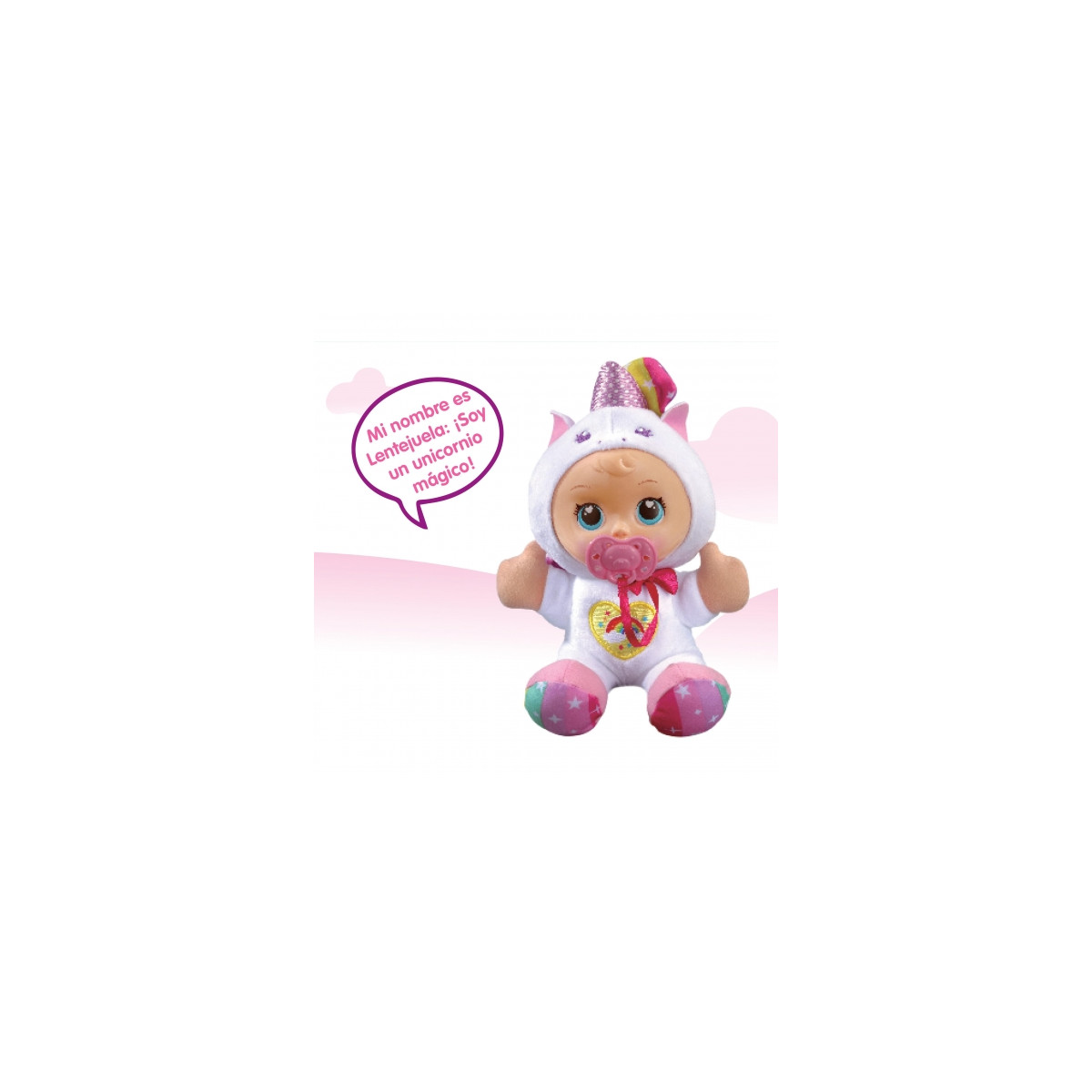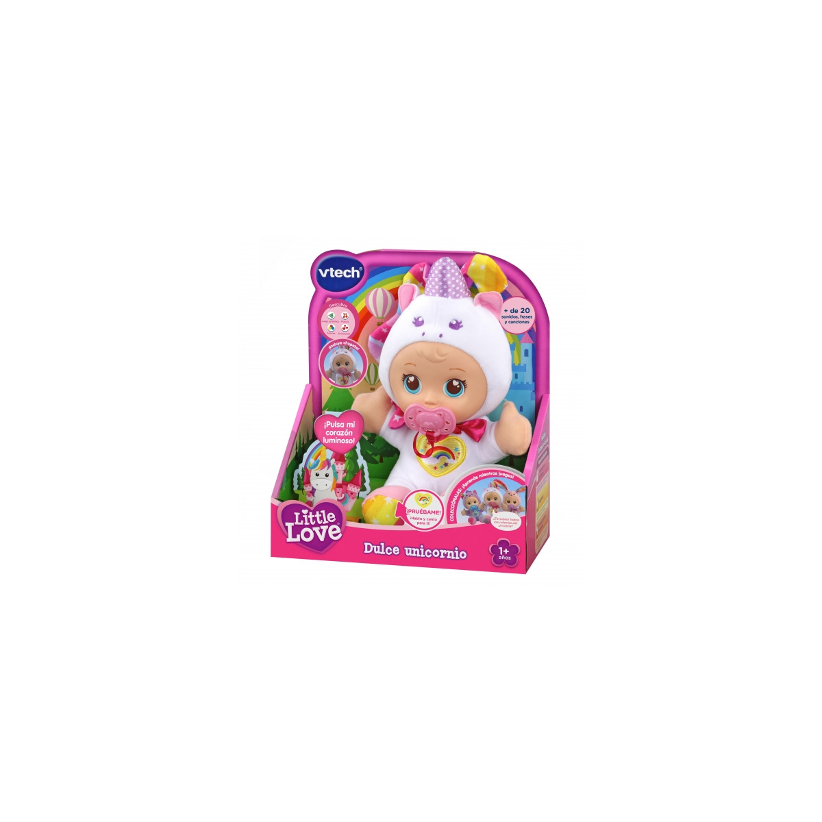 - Incluye: 1 dulce muñeca interactiva little love con chupete y traje de unicornio, botón corazón que reproduce más de 20 frases educativas (cuidados sobre los unicornio), sonidos y canciones