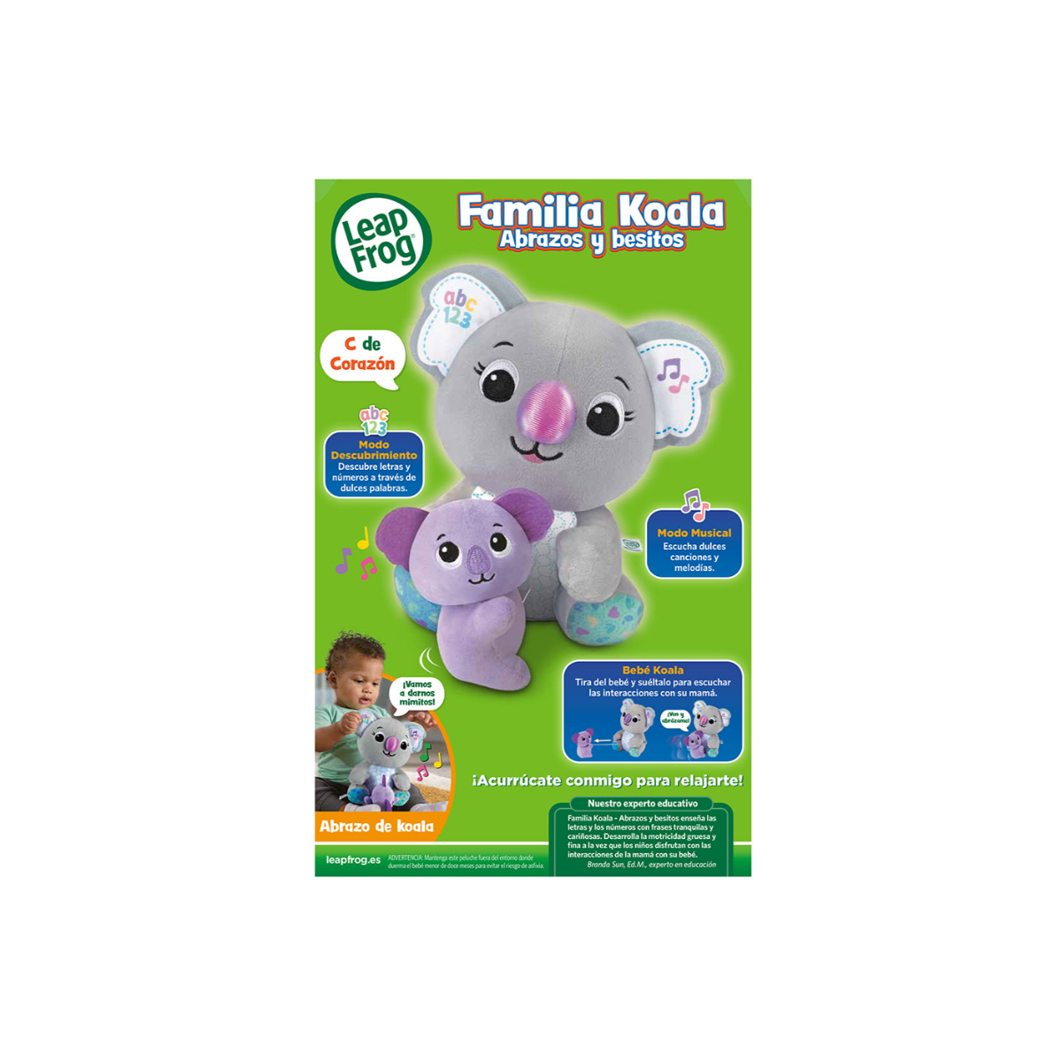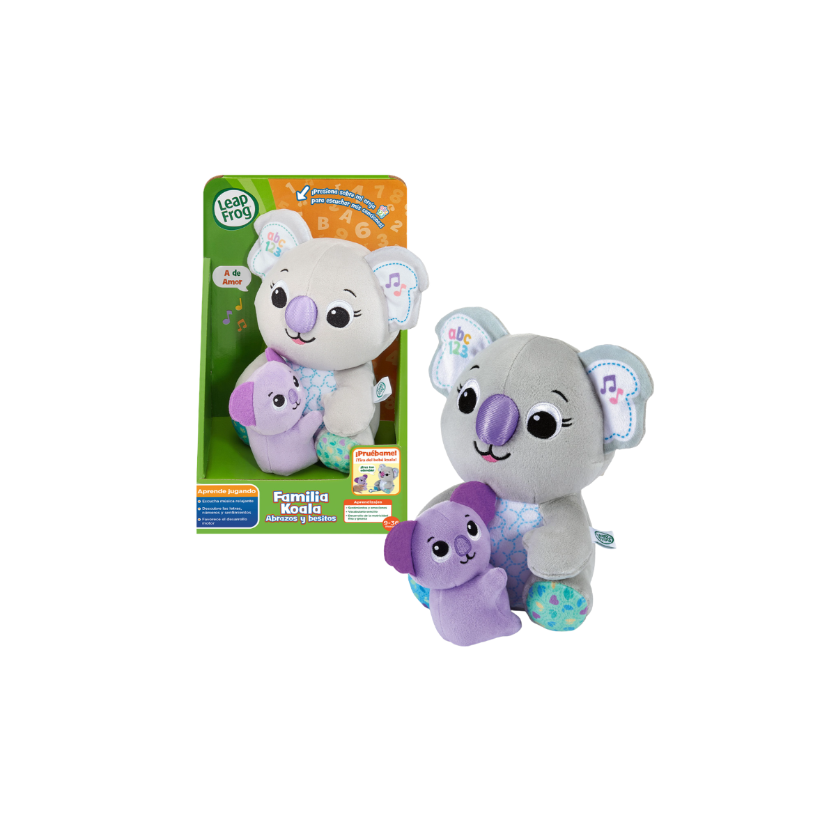 Descubre la Familia Koala Abrazos Y Besitos, es un peluche interactivo con canciones, melodías y aprendizaje temprano que introduce letras, números y primeras palabras a los bebés.