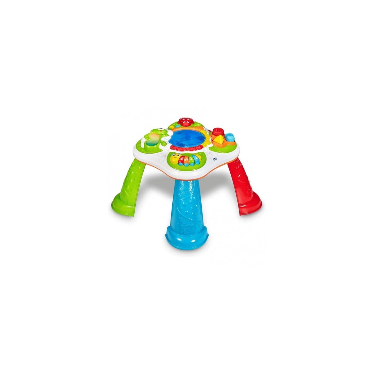 La Mesa del Descubrimiento Sensorial de Chicco es una mesa con 5 zonas de actividades sensoriales, acompañadas de luces y sonidos.