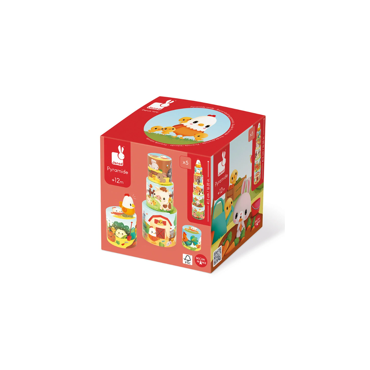 Mi Primera Pirámide La Granja de Janod, un juego perfecto para fomentar la estimulación y la destreza de los peques a partir de los 12 meses.