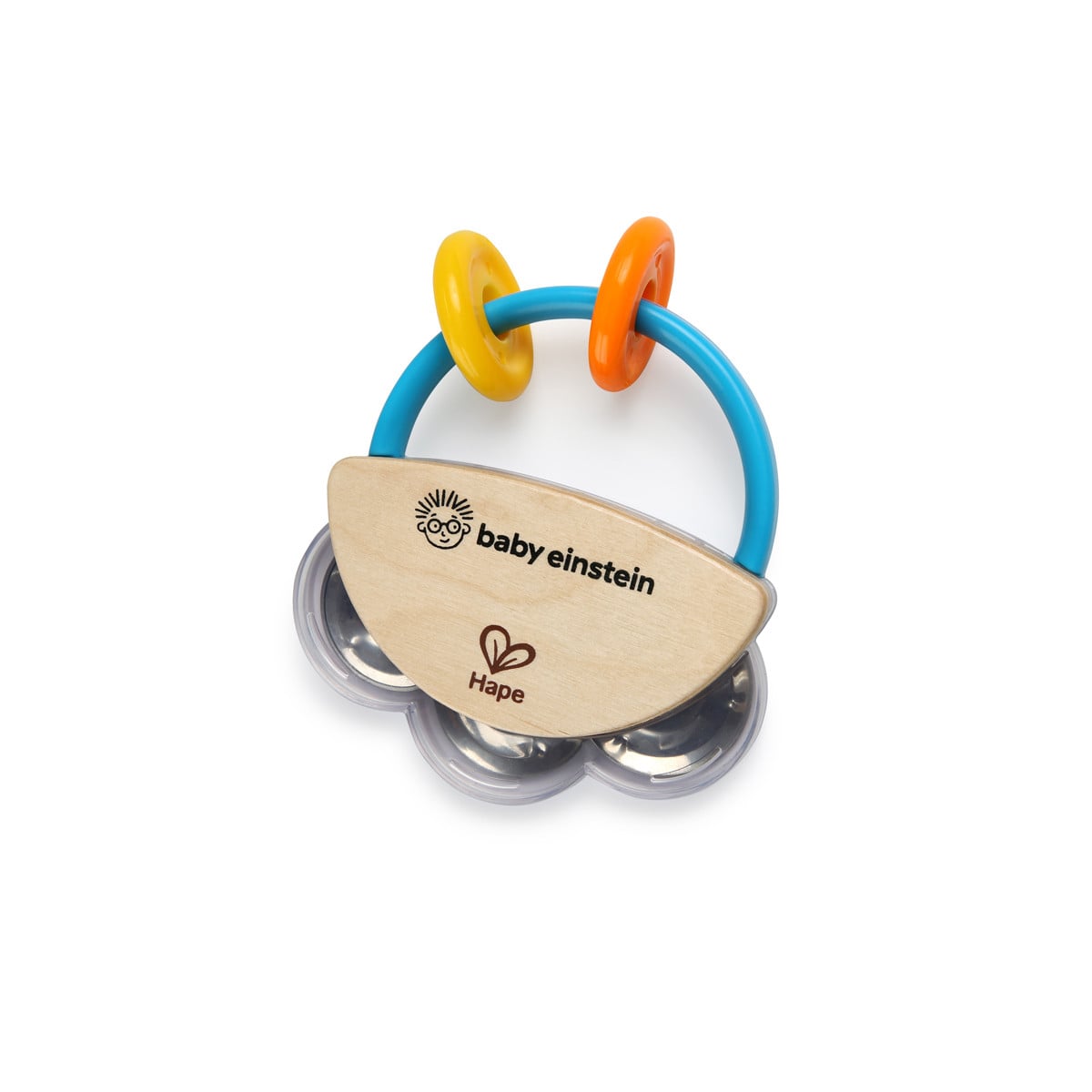 ¡Ande, ande, ande la marimorena! Esta pandereta es una revisión de un sonajero tradicional. Tiene 3 sonajas y dos anillas que harán ruido cuando el bebé lo agite.