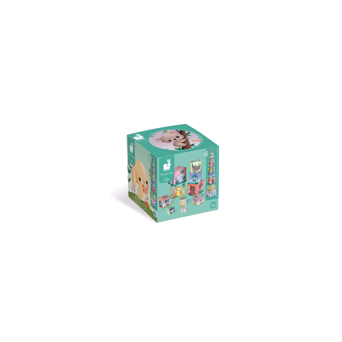 La Pirámide Cuadrada Los Animales Adorables De Janod es un juguete de construcción diseñado para niños a partir de los 12 meses de edad. Consta de 10 “cubos” de cartón con ilustraciones encantadoras relacionadas con animales. Este juguete no solo es divertido, sino también educativo, ya que permite a los más pequeños desarrollar habilidades motoras y destreza fina mientras exploran el mundo de los animales.