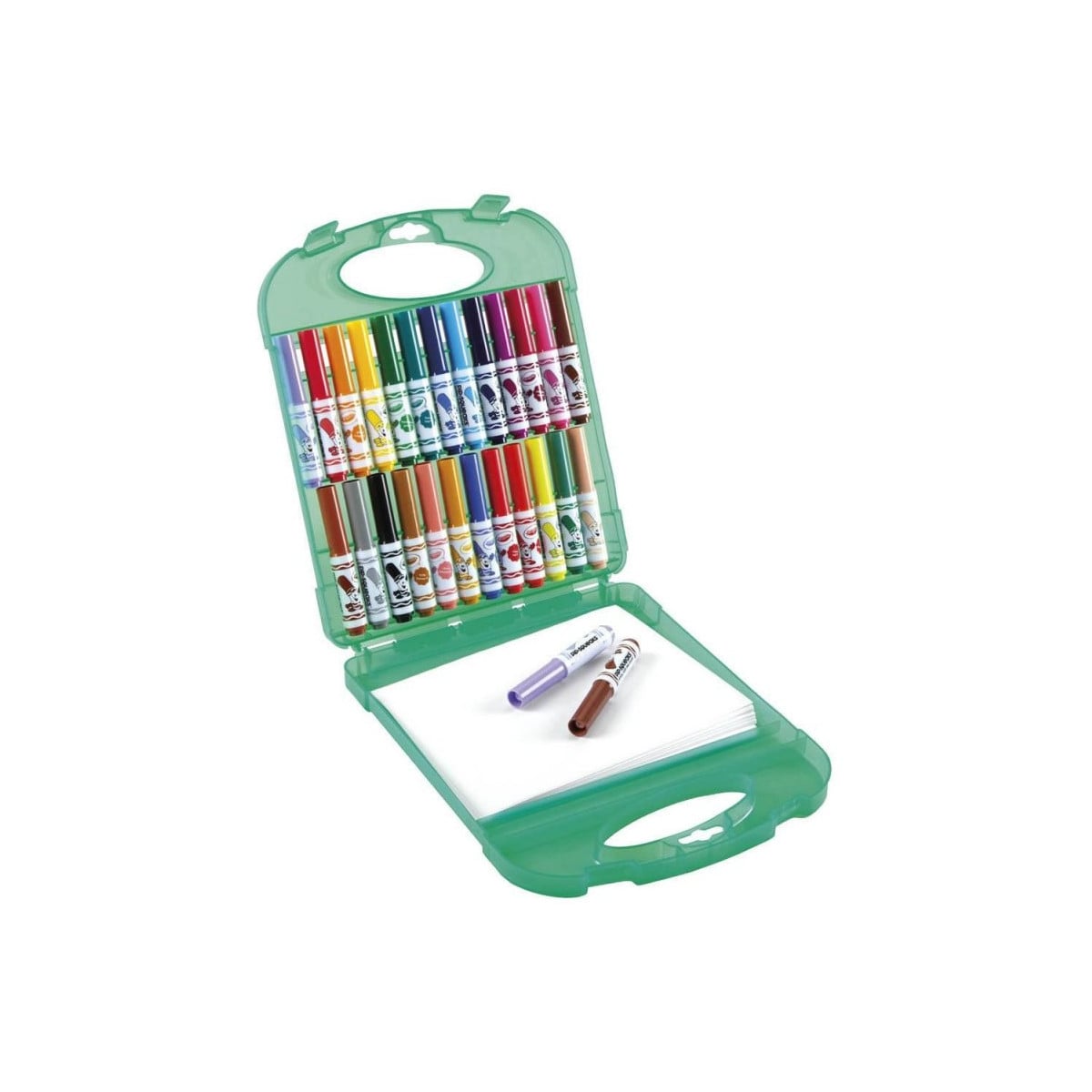 Incluye un estuche de plástico con 25 rotuladores y 40 folios para que puedan dibujar, colorear y crear obras maestras.