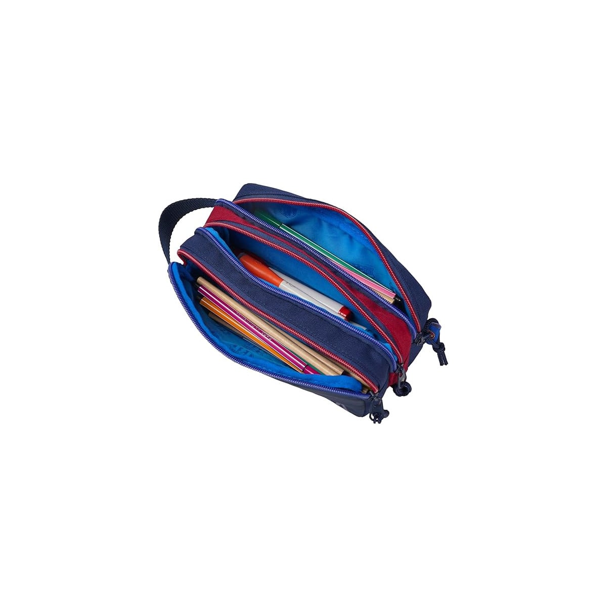 Este portatodo fc barcelona triple con 3 cuerpos es un producto oficial y 100% original del FC Barcelona, diseñado en España siguiendo estrictos controles de calidad y cumpliendo con la normativa europea. Está fabricado con materiales resistentes, pensados para acompañar todo el curso escolar.