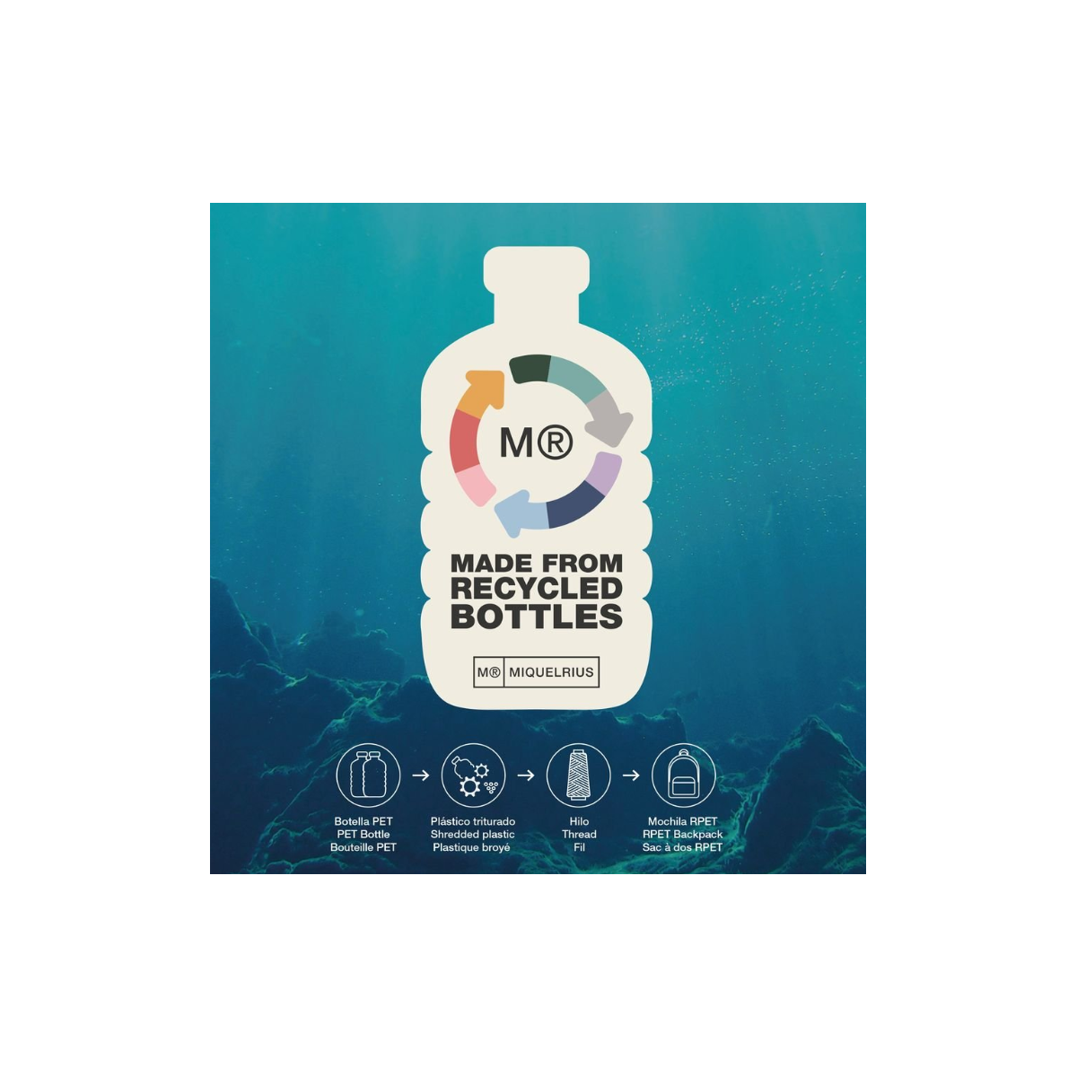 - Material: Fabricado en poliéster reciclado a partir de botellas.