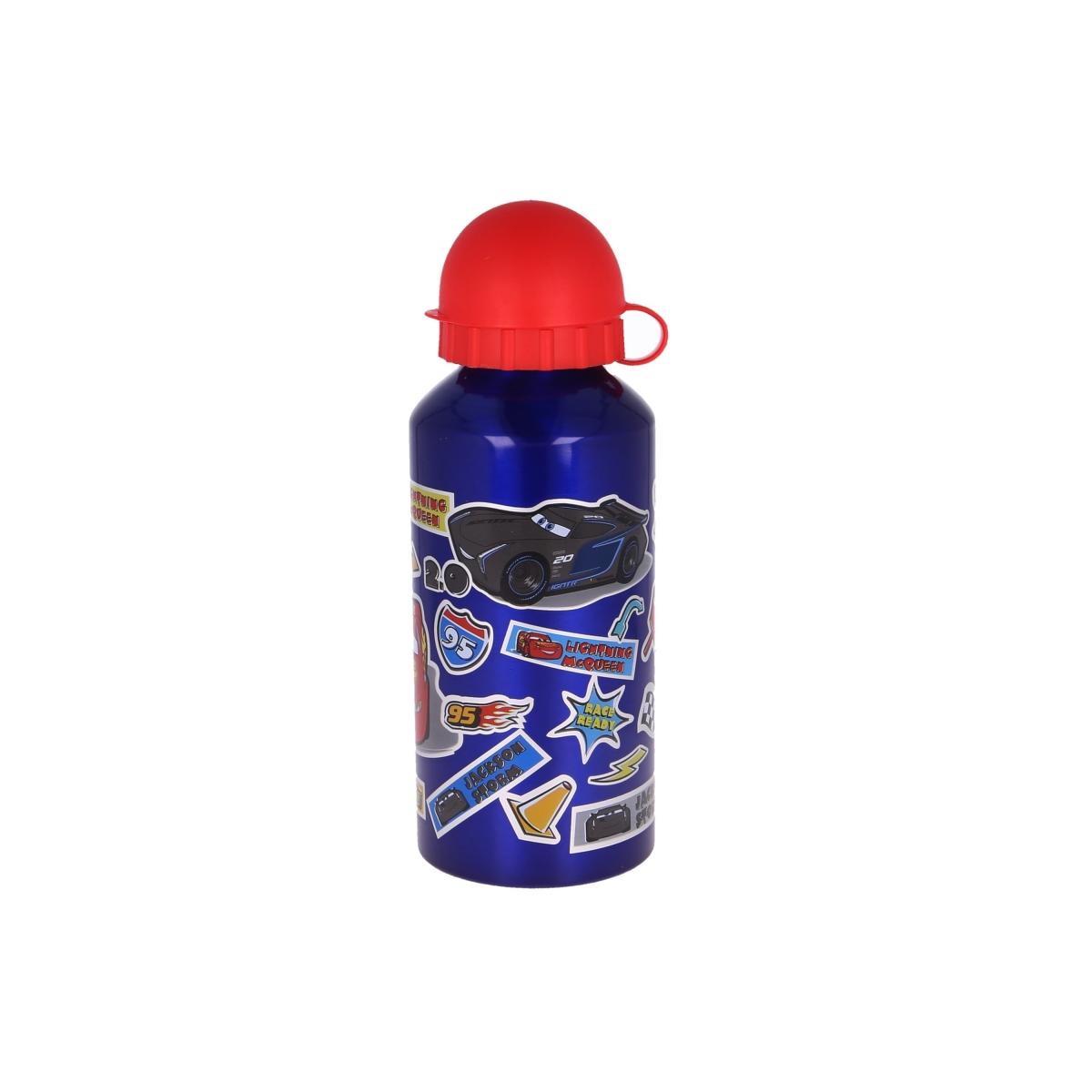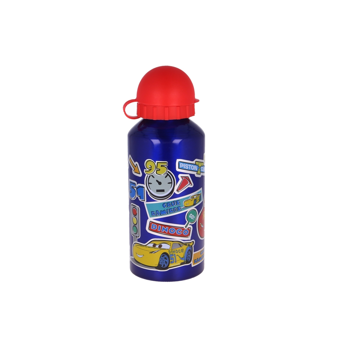 Descubre la Botella Aluminio Cars 400 ML; una botella llena de velocidad y color para que niñas y niños disfruten de sus bebidas con sus personajes favoritos de Cars.