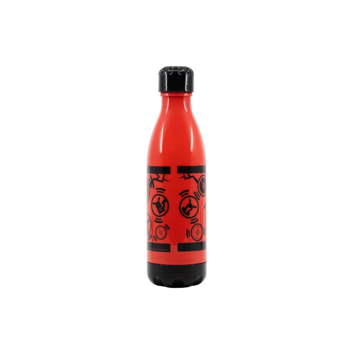La Botella PP Pokémon de 660 ml en color rojo está decorada con diseños del famoso videojuego y la silueta de Pikachu.