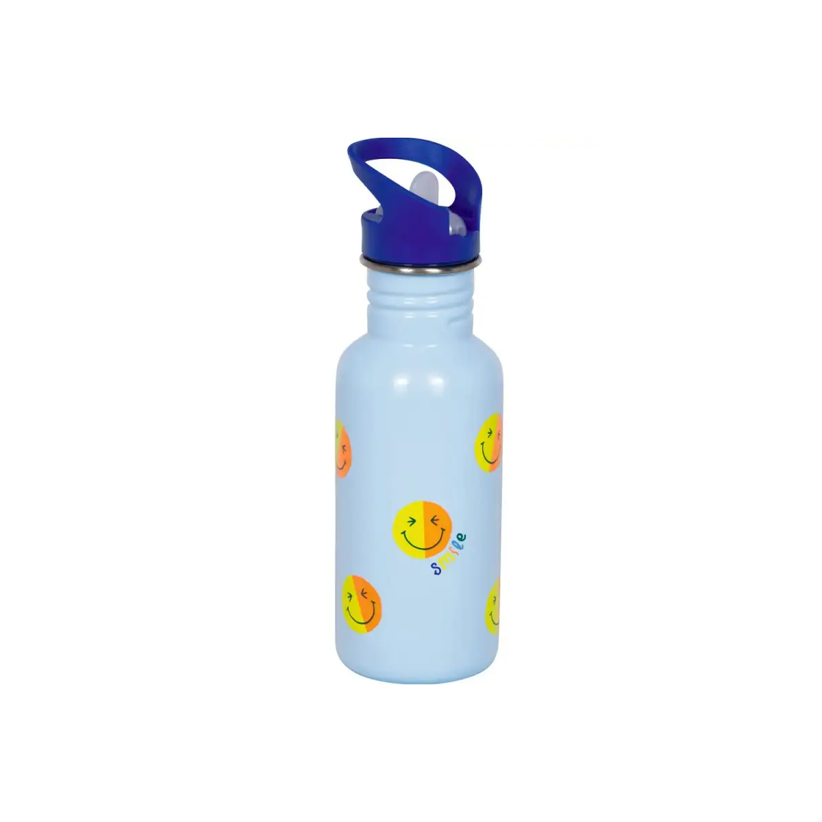 La botella de acero inoxidable Smiley de Die Spiegelburg, perteneciente a la colección Little Friends, es una opción divertida y práctica para acompañar a los más pequeños en su día a día. Su diseño alegre con base azul claro y estampados de caritas sonrientes en tonos amarillo y naranja la convierte en una botella muy llamativa y perfecta para el colegio, excursiones o actividades al aire libre.