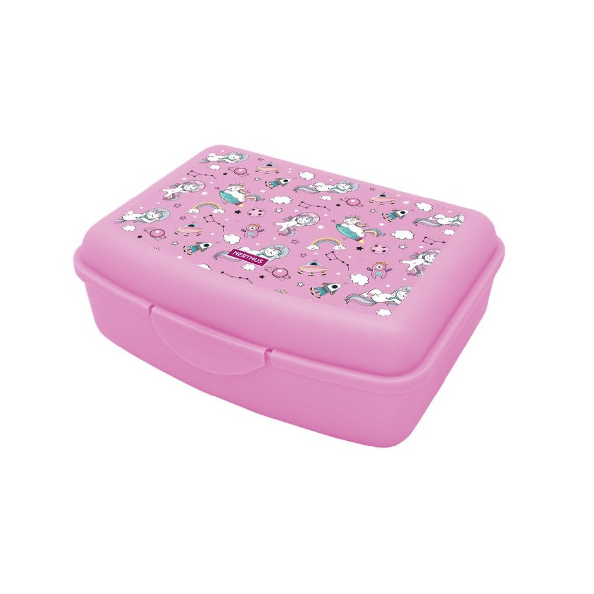 Descubre esta fiambrera rosa de 900 ml con unicornios espaciales, práctica, segura y llena de fantasía, ideal para comidas escolares o meriendas al aire libre.
