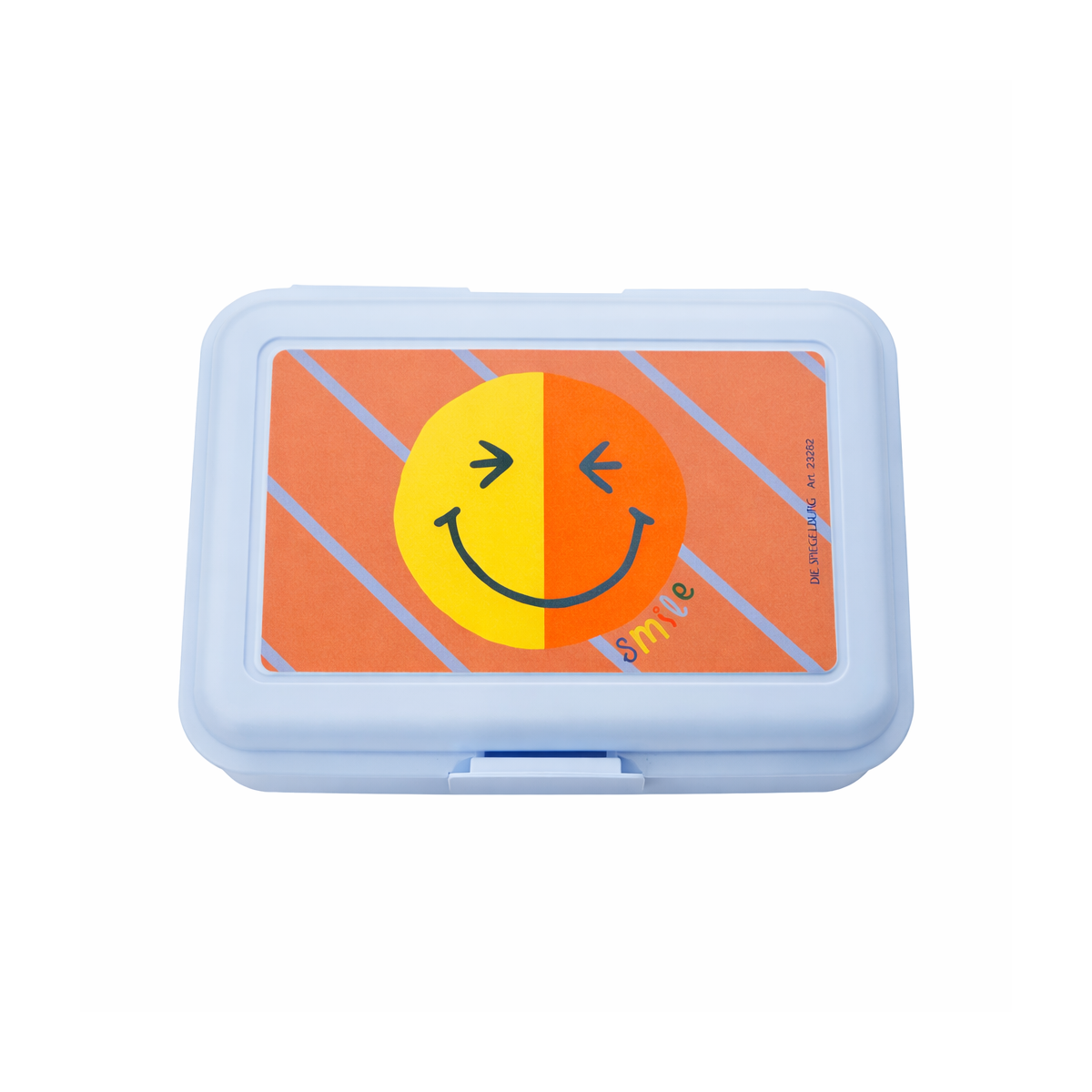 Fiambrera Smile de Die Spiegelburg con separador interior y cierre de clic. Alegre diseño con carita sonriente, ideal para llevar almuerzo o merienda al colegio.