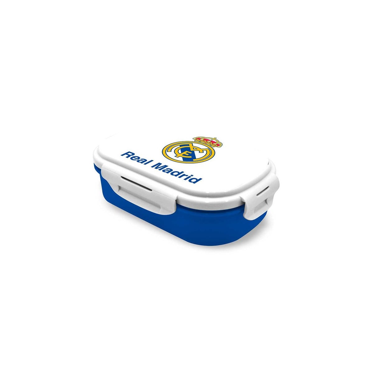 La Sandwichera Con Cubiertos Real Madrid es el accesorio ideal para que los pequeños y grandes aficionados del fútbol disfruten de su almuerzo o merienda con estilo. Con un diseño oficial del Real Madrid, esta fiambrera es perfecta para llevar al colegio, de excursión o a cualquier actividad deportiva.