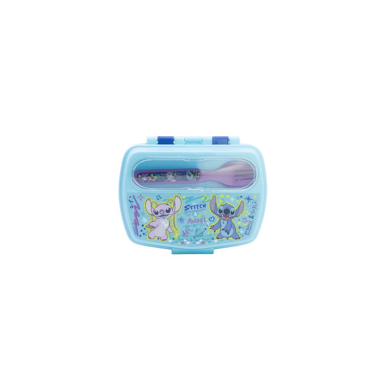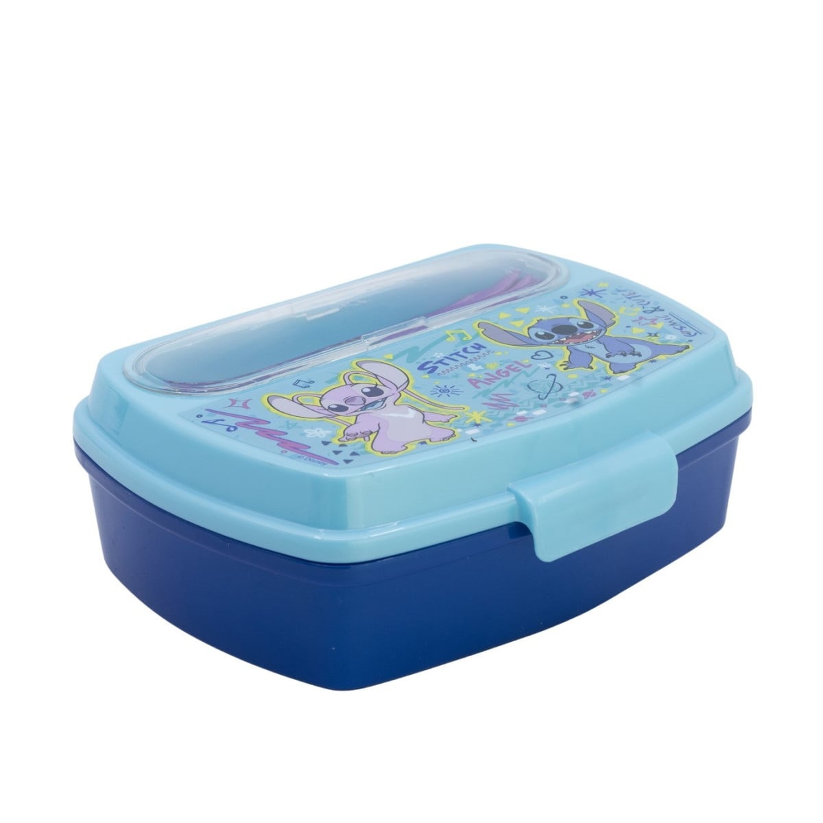 Sandwichera Stitch con cubiertos incluida. Práctica, resistente y perfecta para llevar la merienda al cole o excursiones desde 3 años.