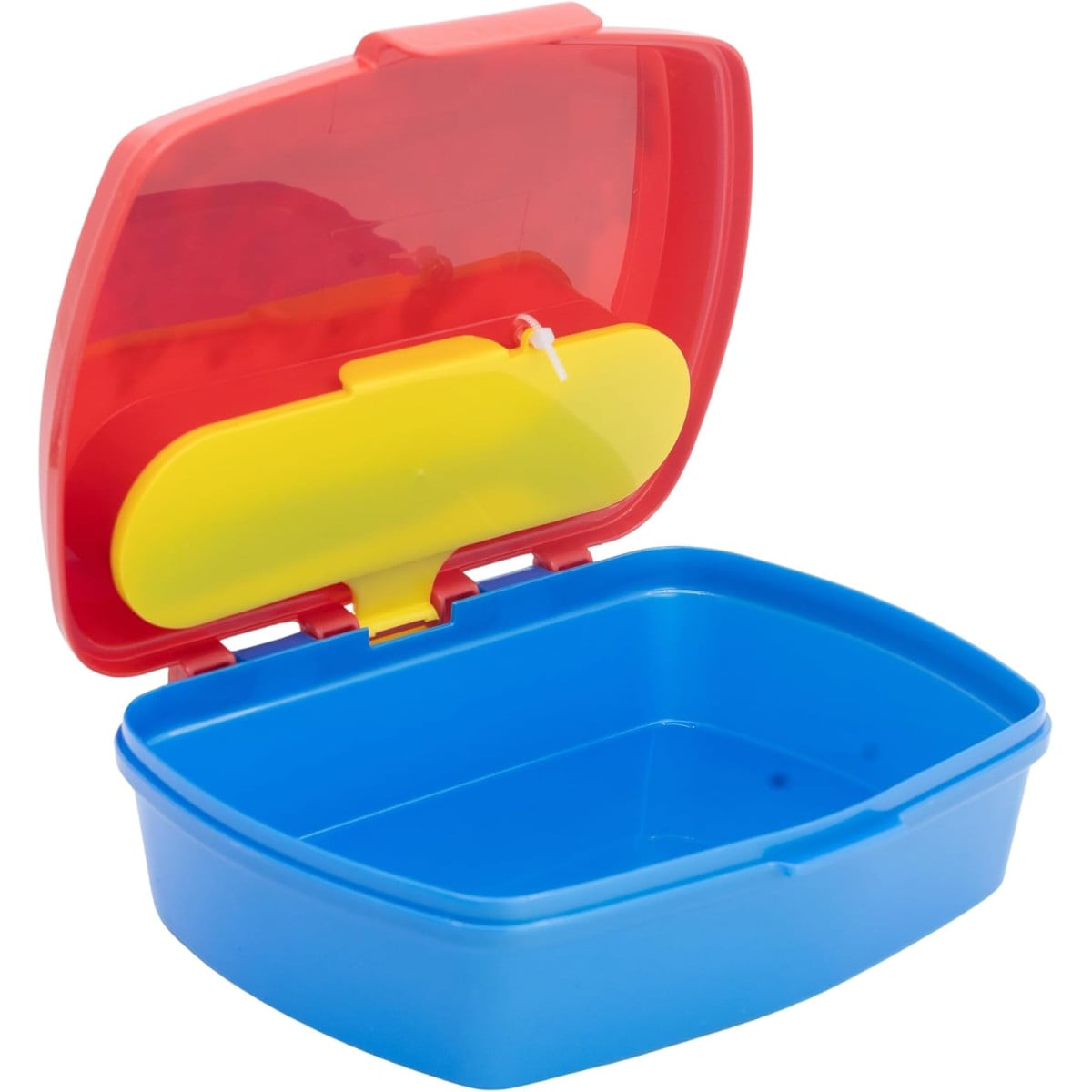 Sandwichera Spiderman con cubiertos incluidos. Práctica, resistente y segura, ideal para llevar comida al cole o excursiones.