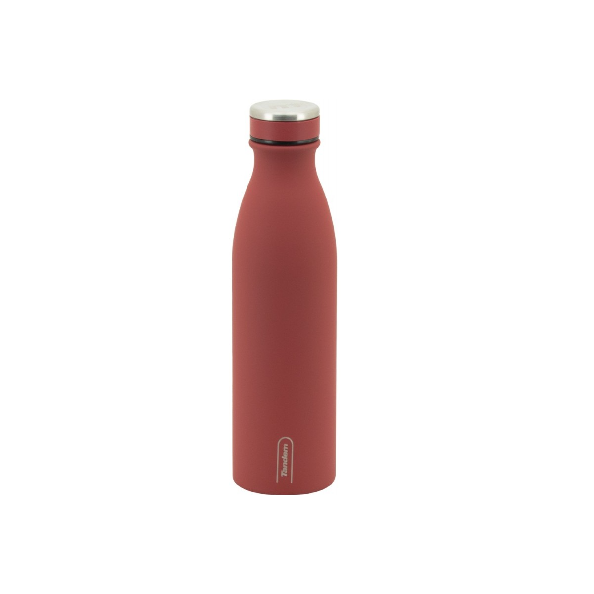 Fabricada en acero inoxidable de doble pared, esta Tandem Botella Berenjena 750 Ml conserva las bebidas frías o calientes durante horas sin generar condensación exterior. El tapón de rosca con cierre hermético permite transportarla de forma segura en mochilas o bolsos sin riesgo de derrames, convirtiéndola en una opción fiable para el día a día.