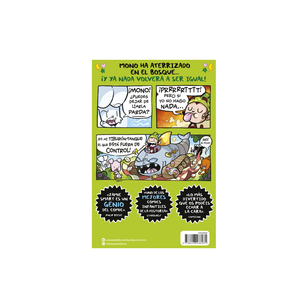 Así comienza una batalla tan absurda como divertida entre Boni y Mono. Entre inventos imposibles, persecuciones locas y planes ridículos para dominar el bosque, los lectores se encontrarán con una historia que no da tregua y que está llena de gags visuales y momentos inesperados.