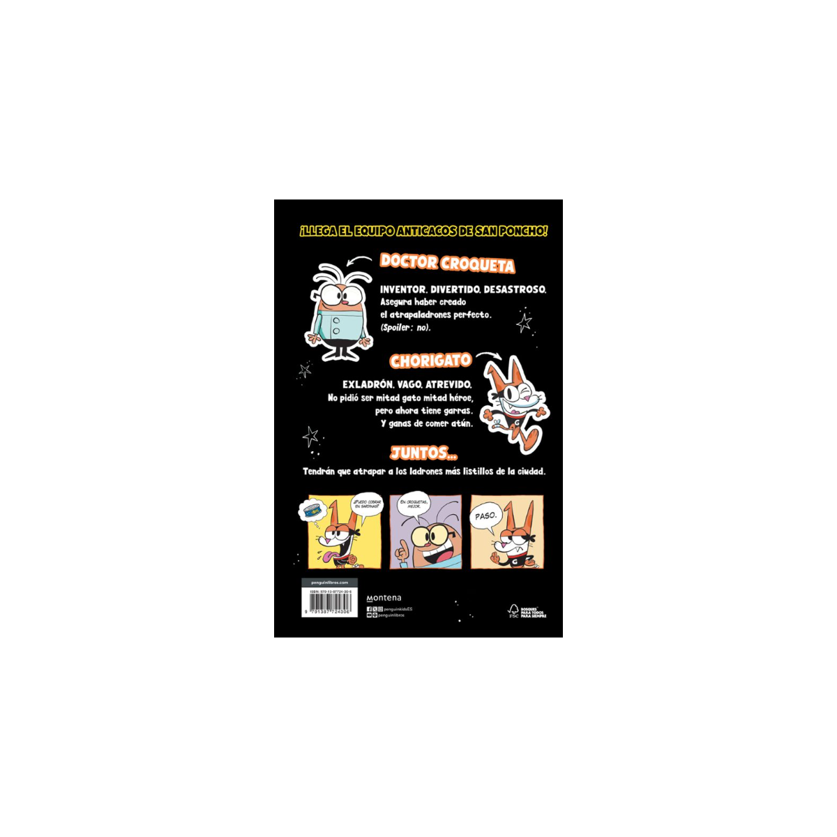 Prepárate para conocer a Chorigato, el héroe más disparatado de San Poncho: mitad gato, mitad ladrón… ¡y cien por cien caos! Cuando el brillante (y algo desastroso) Doctor Croqueta se mete en líos con uno de sus inventos, la ciudad entera puede acabar patas arriba.