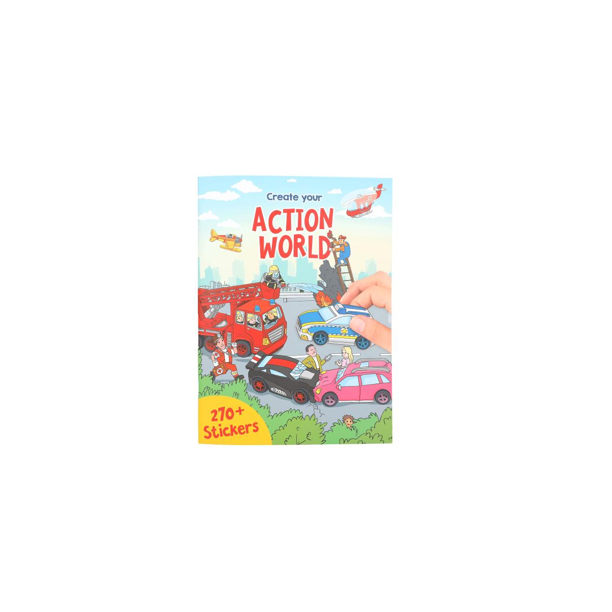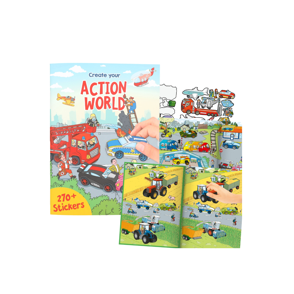 Sumérgete en un universo repleto de creatividad con Create Your Action World de TOPModel, un set pensado para niños y niñas a partir de 4 años que permite construir, decorar y vivir historias épicas. Este kit ofrece una experiencia completa: incluye escenarios de lugares cotidianos (como ciudad, selva o base secreta) y pegatinas para personalizar cada página.