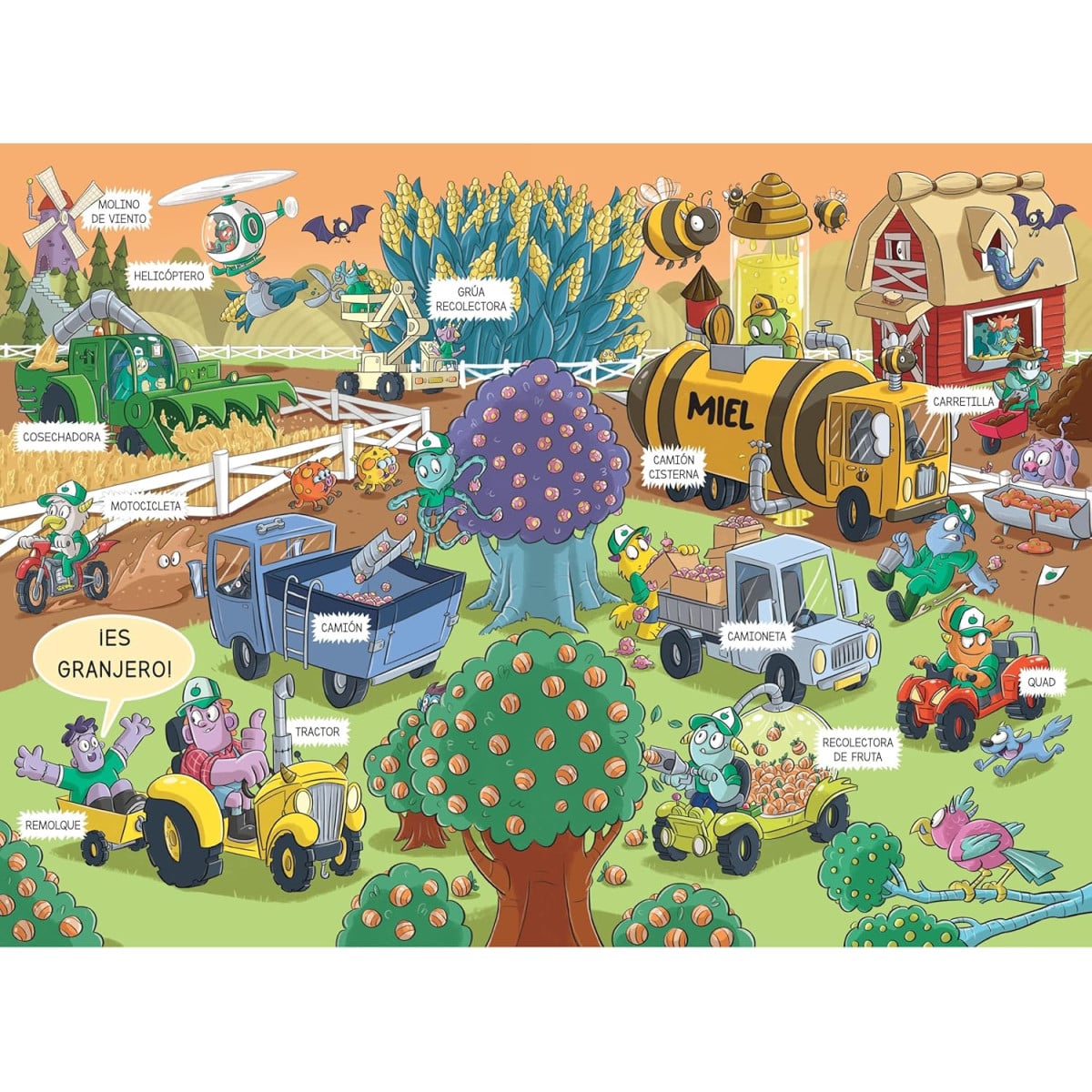 En esta historia, los niños y niñas descubrirán cómo son las familias monstruosas y los diferentes oficios que realizan, desde granjeros hasta conductores de camiones o bomberos. A través de escenarios llenos de vehículos y situaciones curiosas, aprenderán nuevas palabras mientras exploran todo lo que ocurre en este mundo tan peculiar.