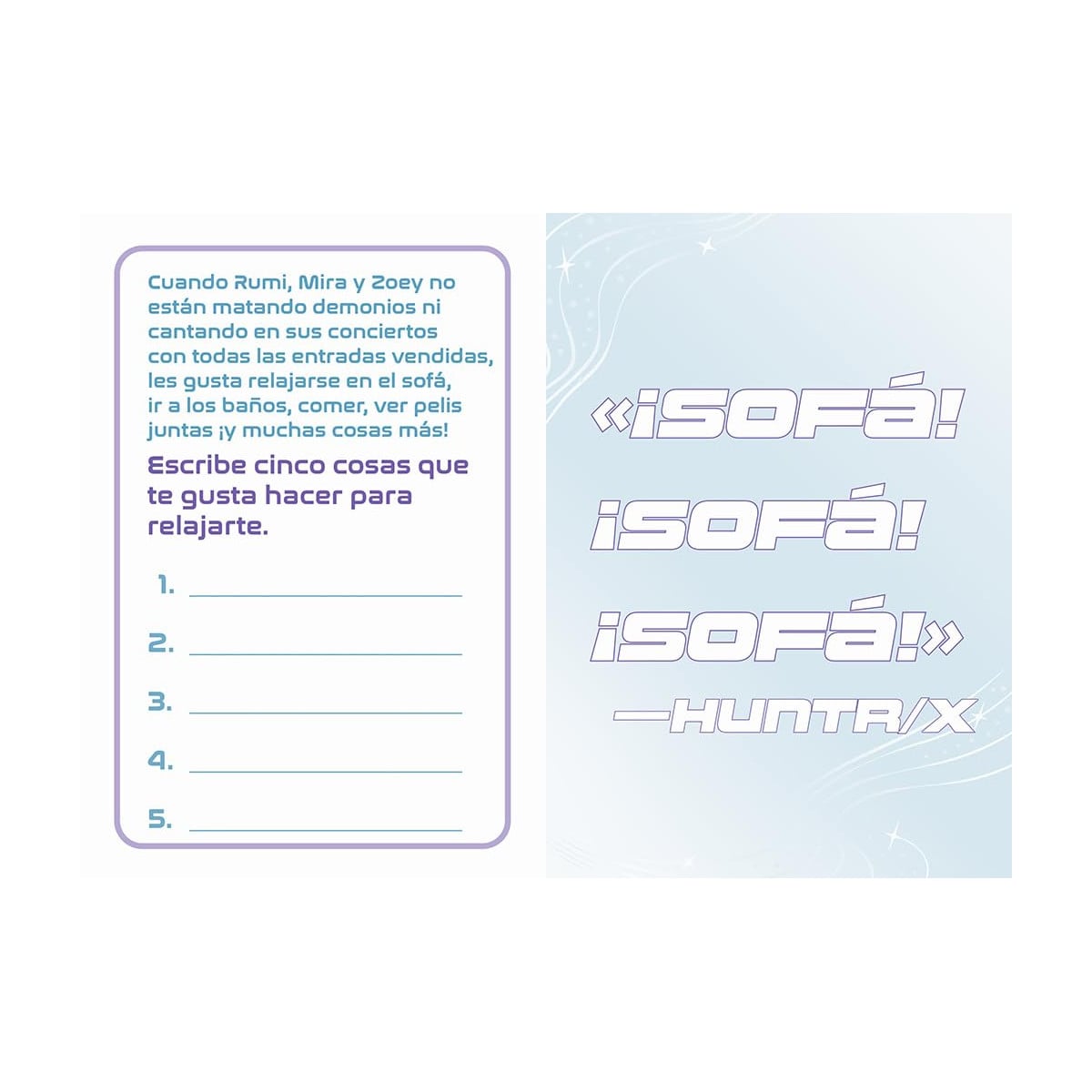 En este diario, los niños y niñas encontrarán un espacio para escribir, dibujar y dar rienda suelta a su creatividad junto a los personajes de KPop Demon Hunters. Se trata de una experiencia participativa que les invita a interactuar con el contenido mientras disfrutan del mundo de sus ídolos de las Guerreras K-POP.