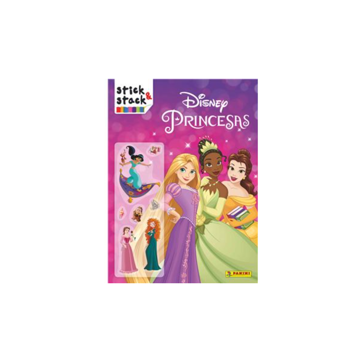 Vive la magia de los cuentos clásicos con el libro Stick & Stack Princesas Disney de Panini, un divertido álbum de actividades con pegatinas que hará volar la imaginación de niñas y niños. Con las protagonistas más queridas de Disney —como Rapunzel, Jasmine, Tiana, Bella y Mérida—, este libro invita a crear un sinfín de historias llenas de color, fantasía y diversión.