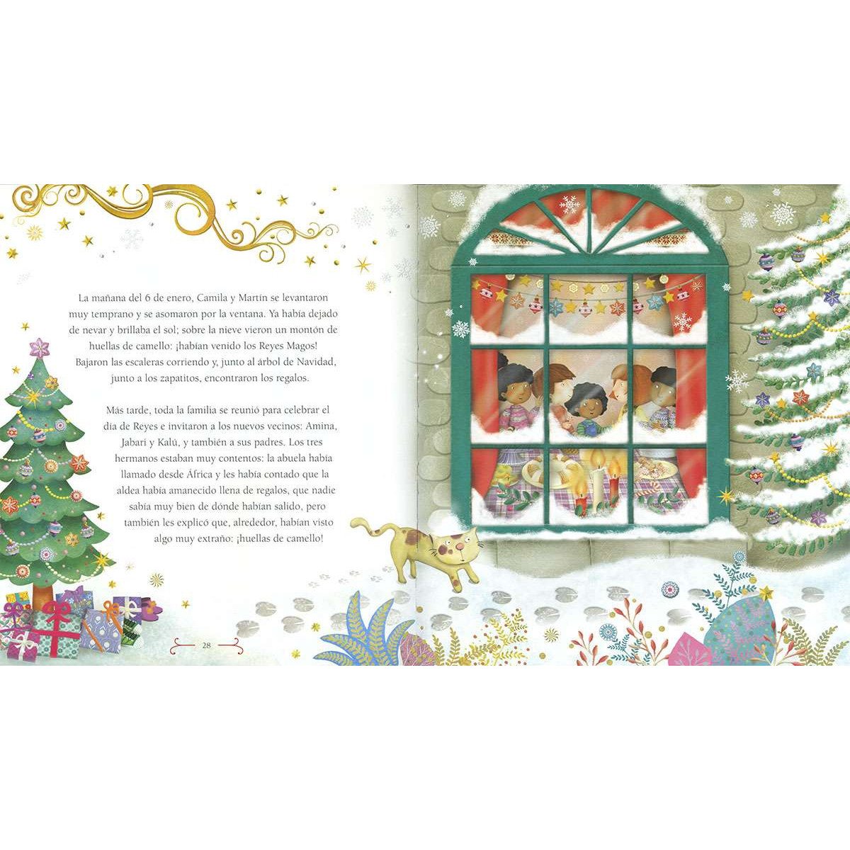 La ilusión del 6 de enero cobra vida en este libro ilustrado donde Camila y Martín, junto a unos nuevos amigos que desconocen la tradición, escuchan al abuelo contar el extraordinario viaje de los tres Magos de Oriente. Ilustraciones cálidas y escenas compartidas en familia ayudan a transmitir valores como la generosidad, la esperanza y la magia de reunirse en torno al cuento.