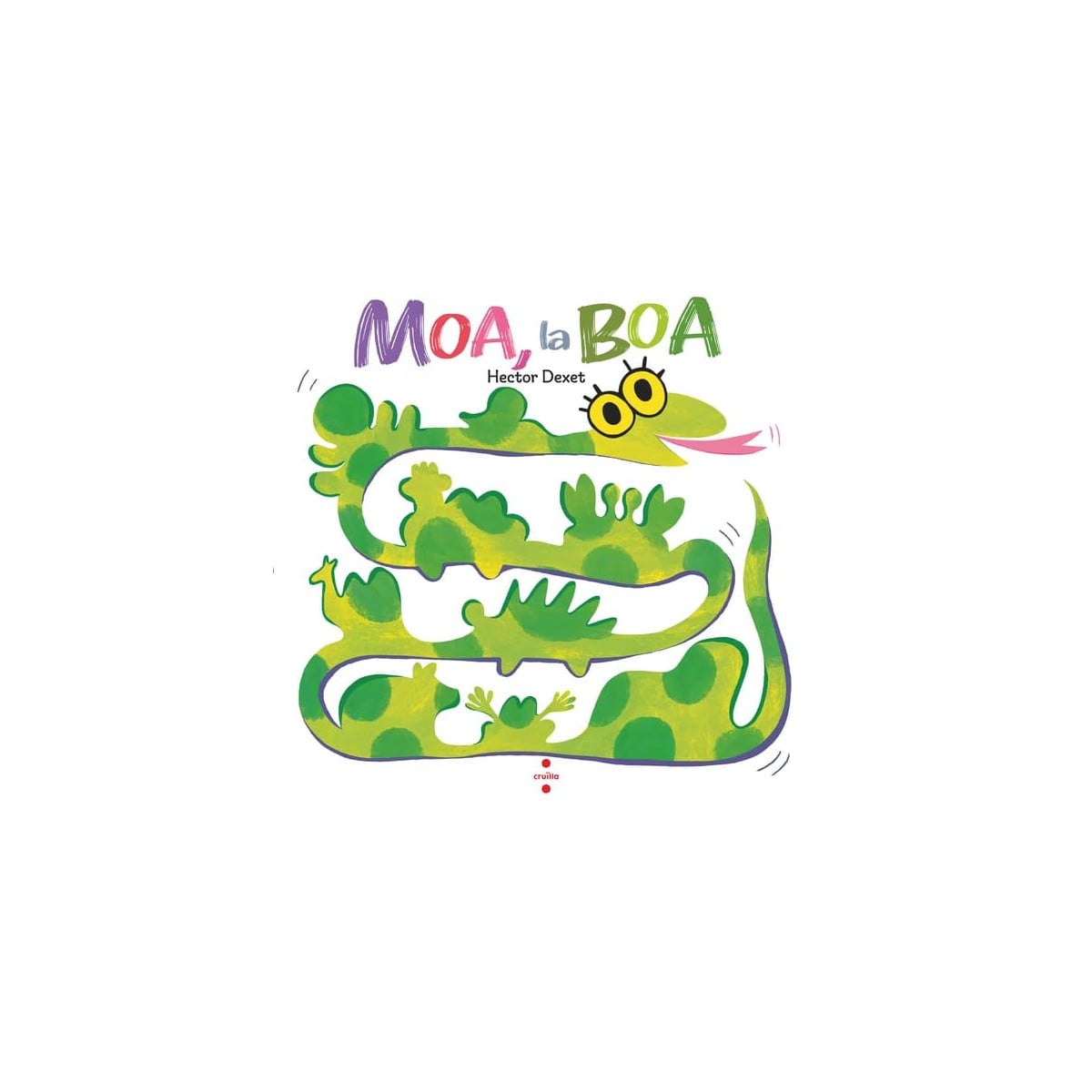 En esta historia, Moa es una boa a la que le gusta comer de todo, aunque hay algo muy importante que no le gusta: los niños y niñas, porque le sientan mal. A través de sus páginas, los peques tendrán que adivinar qué animales se come Moa, participando activamente en el juego que propone el libro y disfrutando de cada descubrimiento.