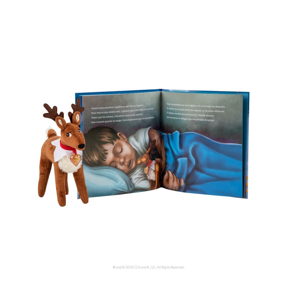 Este conjunto invita a la imaginación y al juego emocional: el peluche del reno puede abrazarse, mimarse y formar parte de historias diarias. Los niños sentirán que tienen un compañero mágico con el que compartir momentos especiales en casa. El libro cuenta cómo estos animalitos ayudan a Santa y enseña valores como la amistad, la ilusión y la responsabilidad.