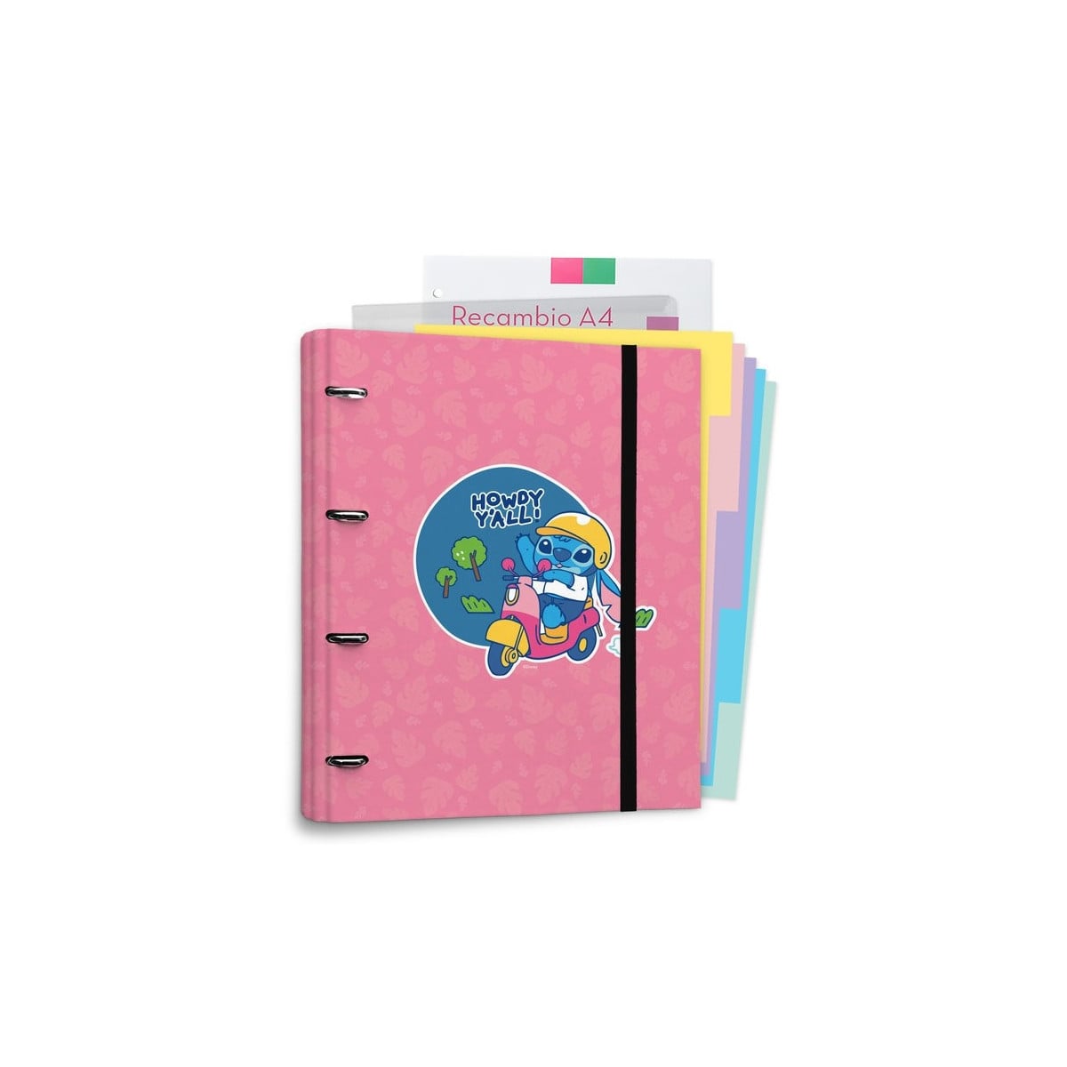 Lleva tus apuntes bien ordenados y siempre a mano en este carpeblock de 4 anillas de Stitch.