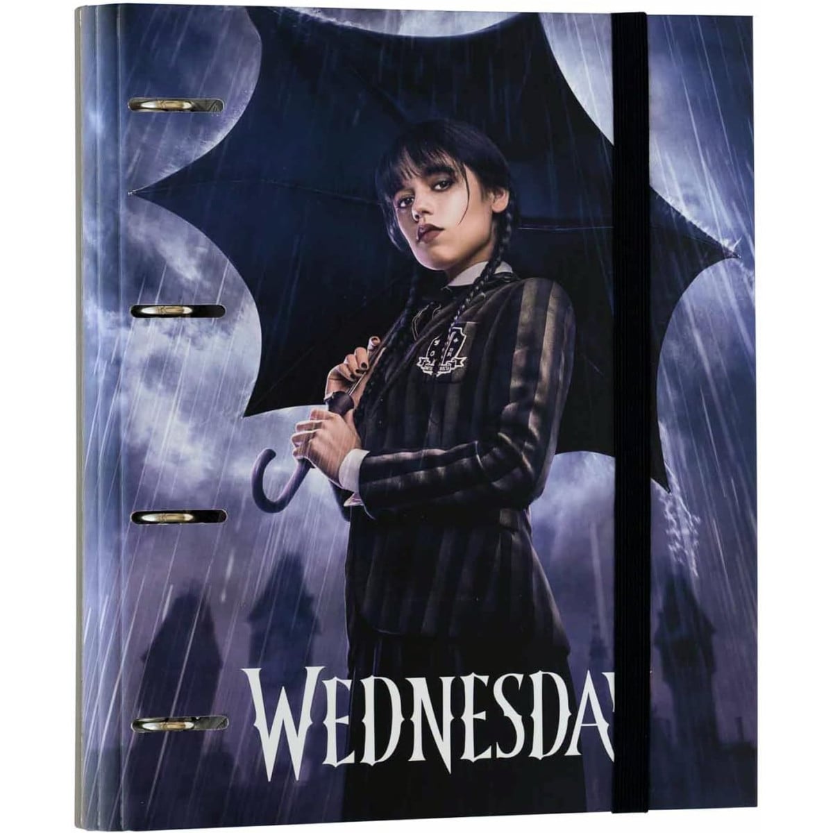 La Carpeblock Miércoles Addams es una opción perfecta para empezar el curso con personalidad y sin tener que comprar nada más. Con un diseño inspirado en la estética oscura y elegante de la serie, esta carpeta 4 anillas Miércoles no solo organiza, también marca estilo desde el primer día de clase.