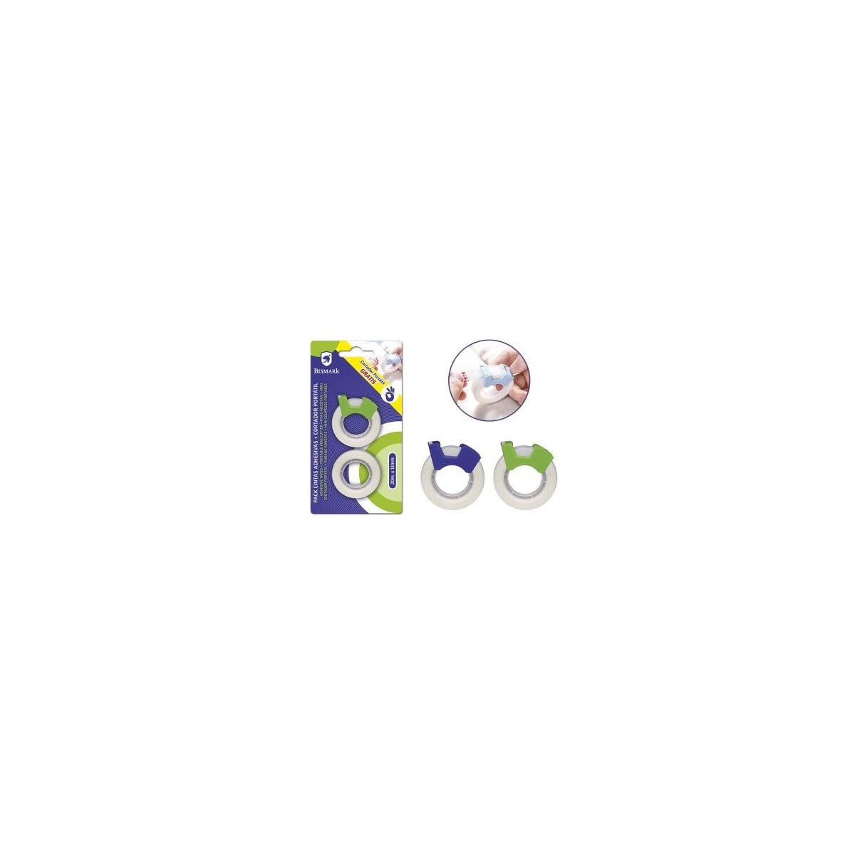 - Incluy: 1 pack de 2 rollos de cinta adhesiva y un 1 cortador
