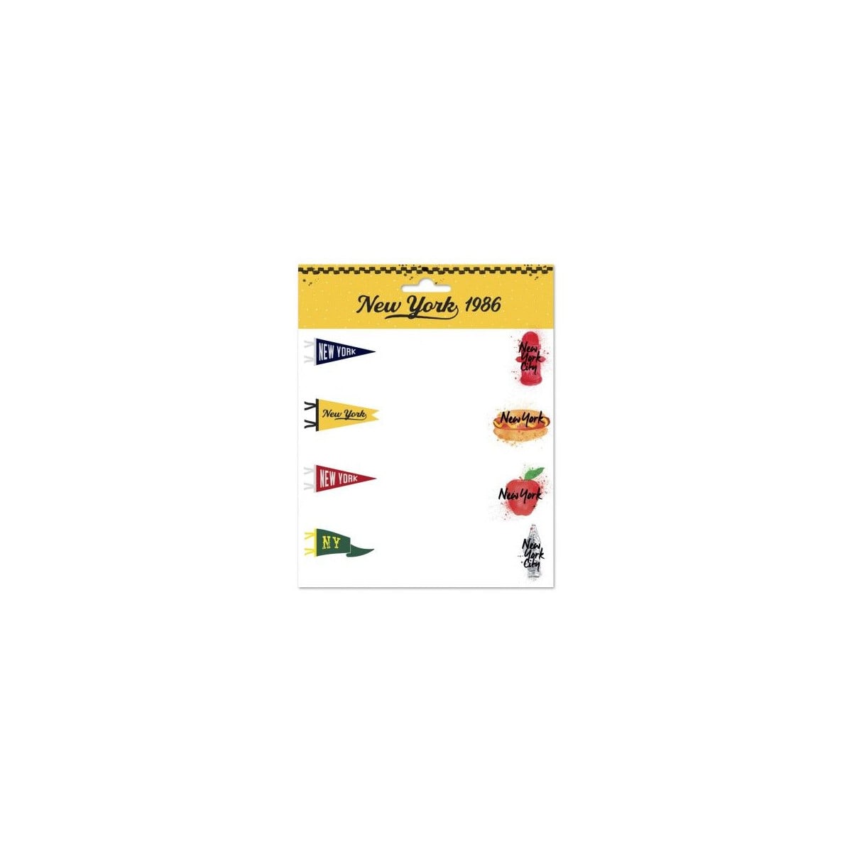 - Incluye: 2 páginas con 16 etiquetas adhesivas con dibujos de New York 1986