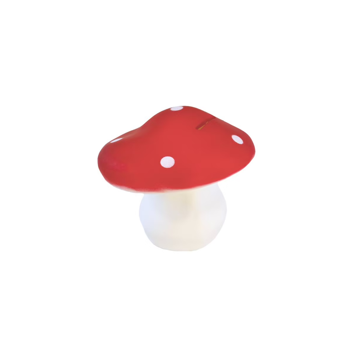 Hucha infantil con forma de seta roja con lunares blancos de Egmont Toys. Decorativa y práctica para guardar monedas y empezar a ahorrar.